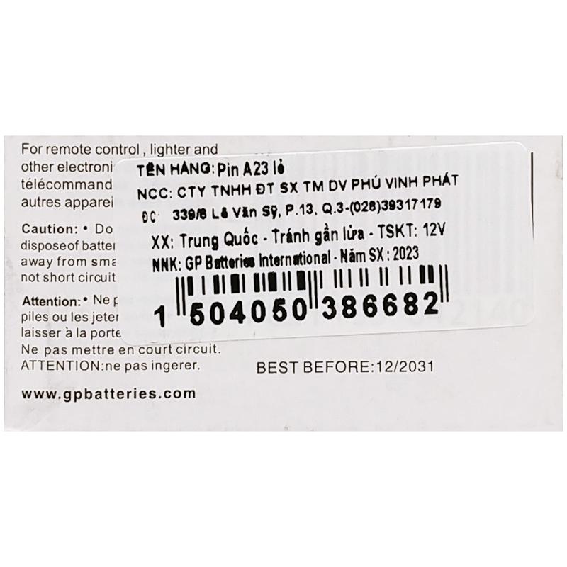 Mua tại TiktokPin High Voltage 12V - GP Batteries Sản phẩm có độ tiêu hao thấp, bền bỉ hơn pin thế hệ cũ. Pin có hiệu điện thế lớn tới 12V. Giữ năng lượng ở chế độ lưu trữ để có thể dùng bất kỳ khi nào bạn cần. Dung lượng pin lớn, giúp bạn xóa tan đi nổi lo thay pin thường xuyên. Sản phẩm có chất lượng cao, an toàn cho thiết bị sử dụng, không gây ô nhiễm, thân thiện môi trường.