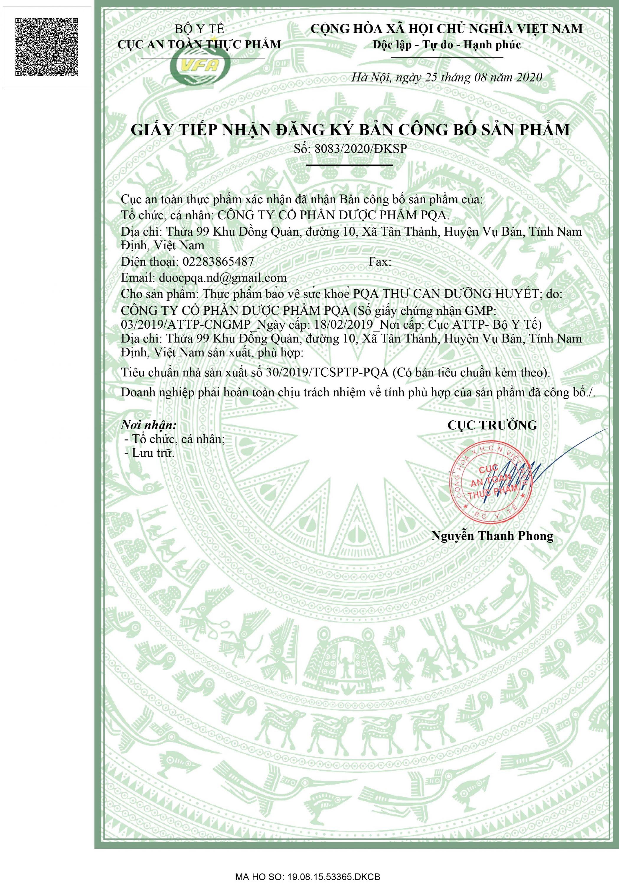 THÔNG TIN PQA THƯ CAN DƯỠNG HUYẾT
