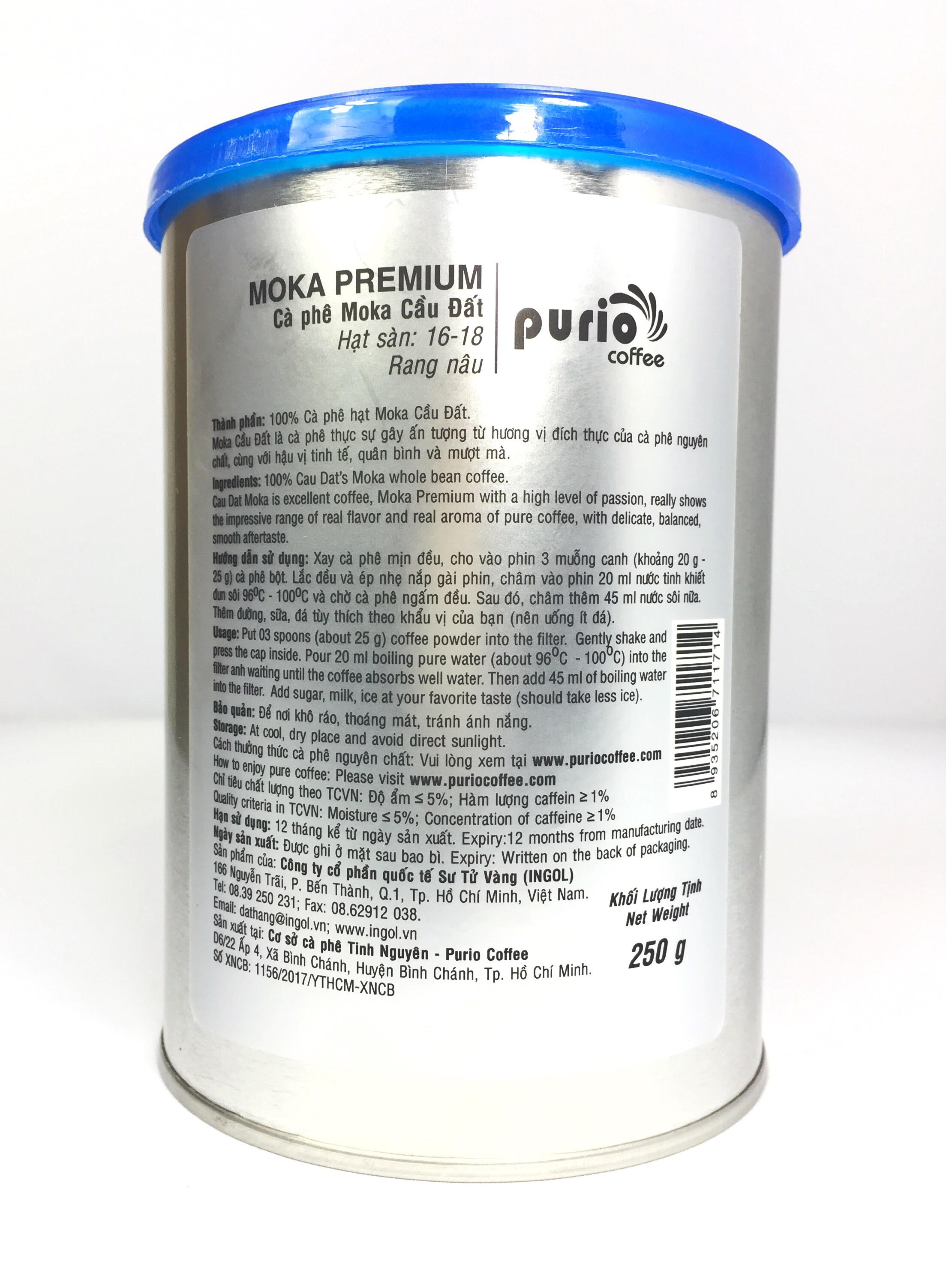 Nguồn gốc: Lâm Đồng và Buôn Mê Thuột Sản xuất: Rang và đóng gói tại Việt Nam. Quy cách/Mức độ rang: Vừa. đóng gói: 250g/túi. Chứng nhận ISO & HACC 22000:2018