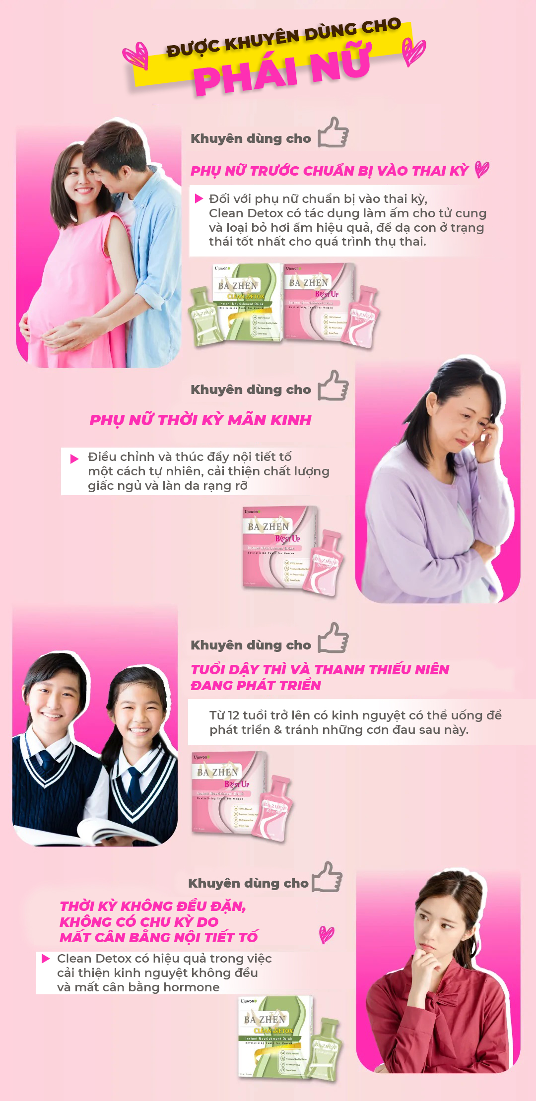 - Bổ khí huyết Cải thiện chứng đau bụng kinh.