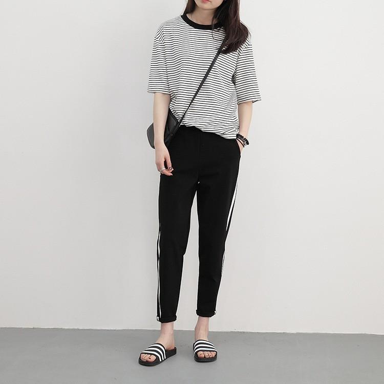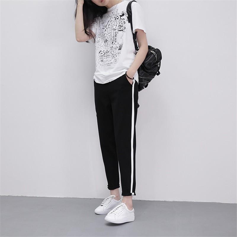 ✨QUẦN BAGGY THỂ THAO_QUẦN BAGGY VẢI THUN CO GIÃN_QUẦN THỂ THAO NỮ_ Quần Baggy Nữ Kẻ Sọc Dọc Trắng Phong Cách