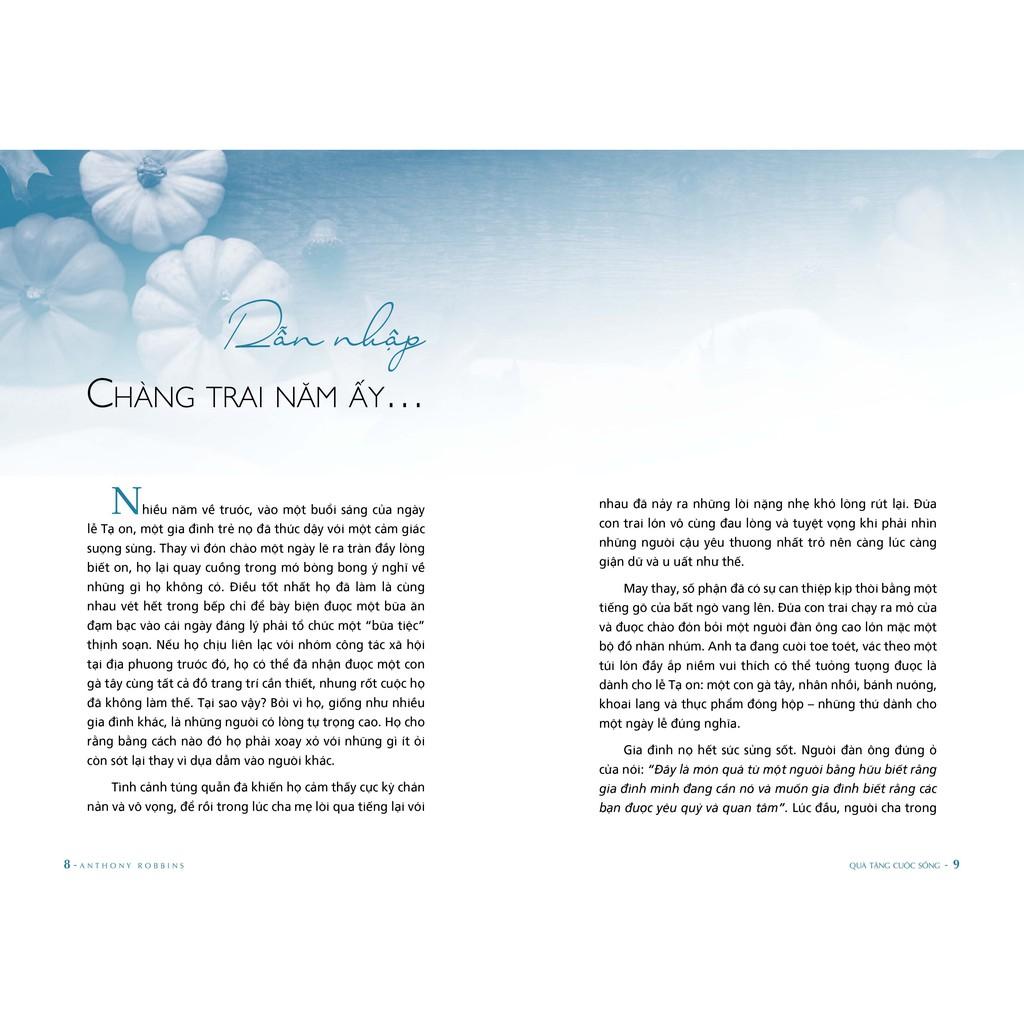 “Quà tặng cuộc sống” là tập hợp của những mẩu chuyện truyền cảm hứng, trong đó có những mẩu chuyện từ chính cuộc đời Anthony Robbins và những tấm gương vượt khó, vươn lên thành công trong cuộc sống như Colonel Sanders (người sáng lập KFC), và Walt Disney (nhà sáng lập hãng phim Walt Disney), Michael Jordan ( huyền thoại bóng rổ Mỹ) ….