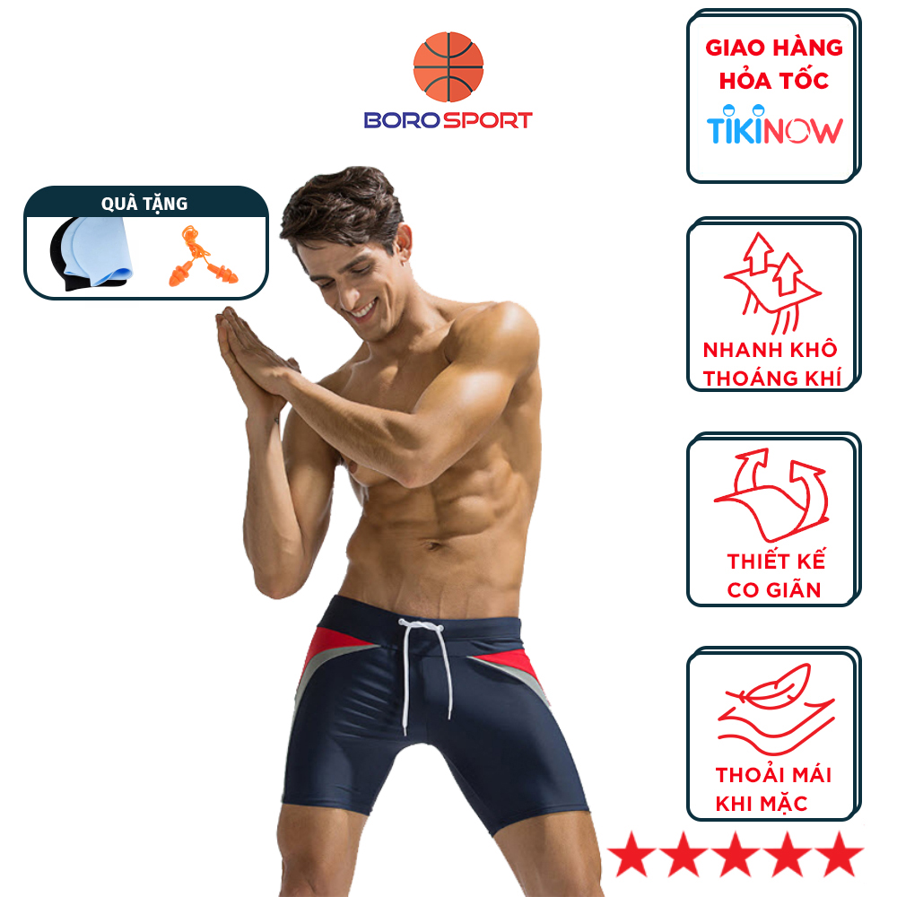 Quần bơi nam Boxer YESURE SOC Chất liệu polyester Spandex cao cấp , chống thấm , nhanh khô form Fitness thời trang (Tặng kèm nón bơi + bịt tai silicon) Bộ sản phầm tặng kèm