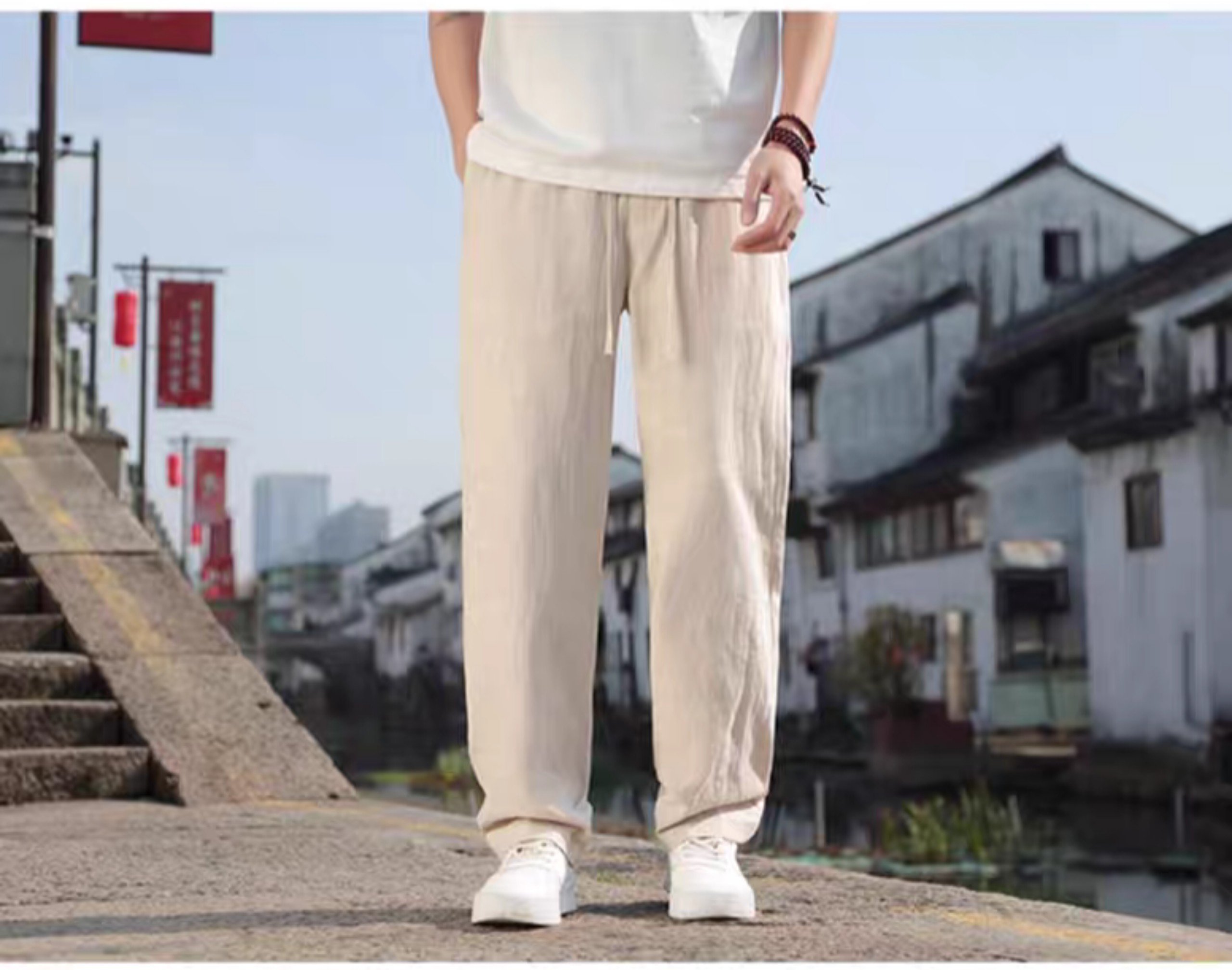 Quần Nam Chất Đũi Linen Dài Dáng Đứng Ống Rộng Vải Cao Cấp Mịn Đẹp Co Giãn Nhẹ Không Xù Lông Không Bai Gião Đây là sản phẩm quần linen CHÍNH HÃNG XƯỞNG 100% Cam