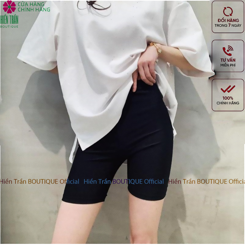 ✨Quần legging đùi Hiền Trần BOUTIQUE nữ thun cạp cao biker lửng ngố đồ mặc nhà dáng ôm bó lưng thun bigsize tập gym yoga