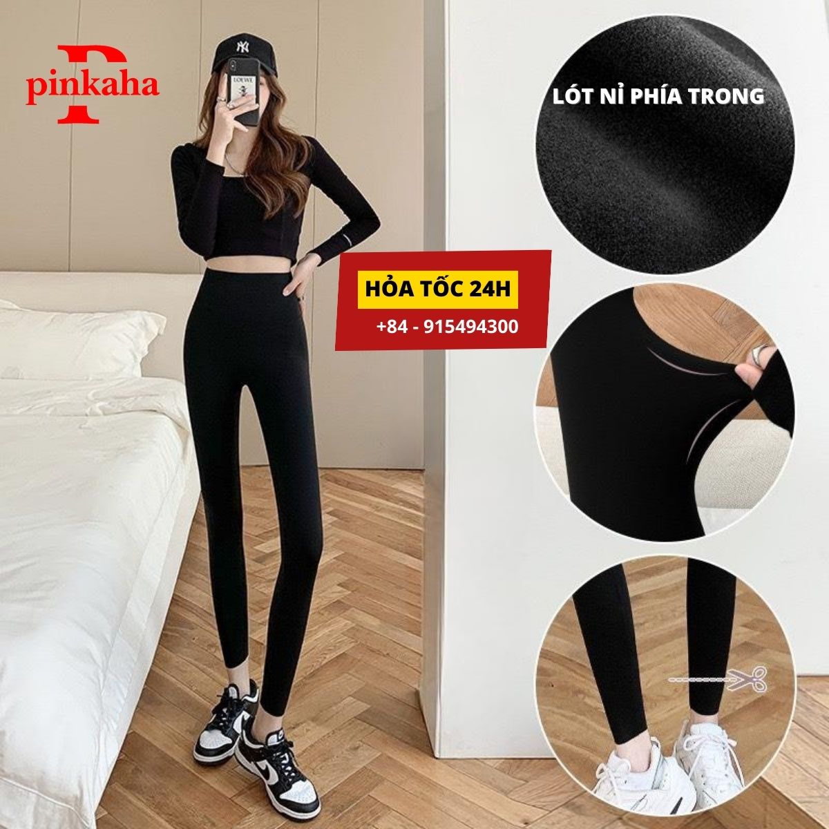 » THÔNG TIN SẢN PHẨM: - Tên Sản Phẩm :Quần Legging Nữ Dài Lót Nỉ Dày Dặn Mặc Lên Ôm Dáng Nâng Mông Lưng Siêu Cao Dấu Bụng PINKAHA Cao Cấp - Chất vải :