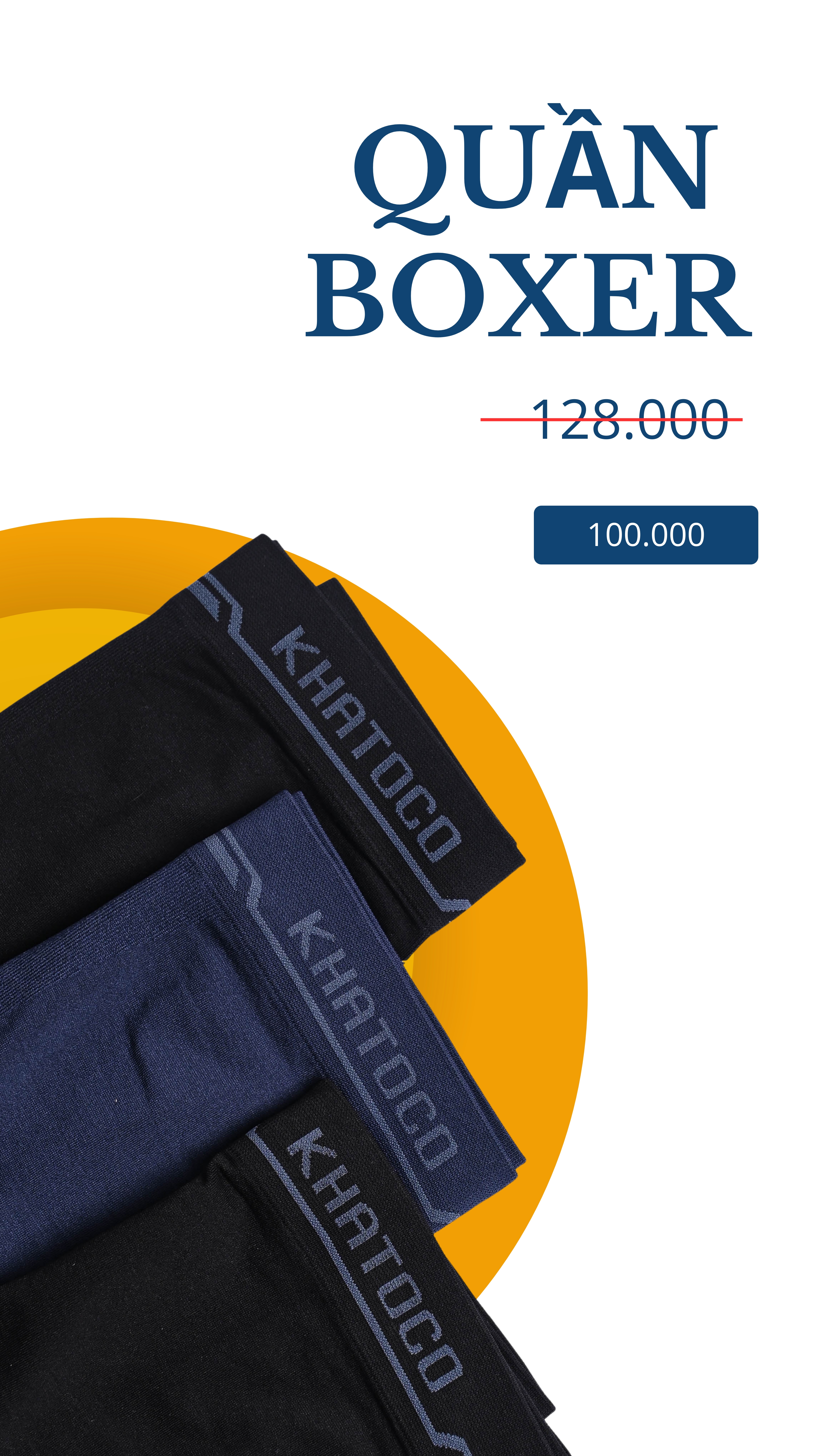 Mua tại Tiktok(V) Mô tẩ sản phẩm: Quần Boxer nam Khatoco: Còn gọi là quần dệt kim,quần được thiết kế không đường may,co giãn 4 chiều, mang lại cảm giác thoải mái cho người mặc. Thành phần:10%Spandex-90%Polyamide. Quần được thiết kế may ôm sát cơ thể,dễ cử động,thấm hút mồ hôi tốt. Màu sắc đa dạng:Grey-Black-Deep Blue. Quần được thiết kế với đai lưng quần nhỏ, có logo Khatoco thể hiện sự nam tính. Size:M-L-XL-2XL.