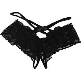 ✨Quần lót nữ trễ eo xẻ đáy gợi cảm vải ren xuyên thấu đính nơ nhỏ - Màu đen