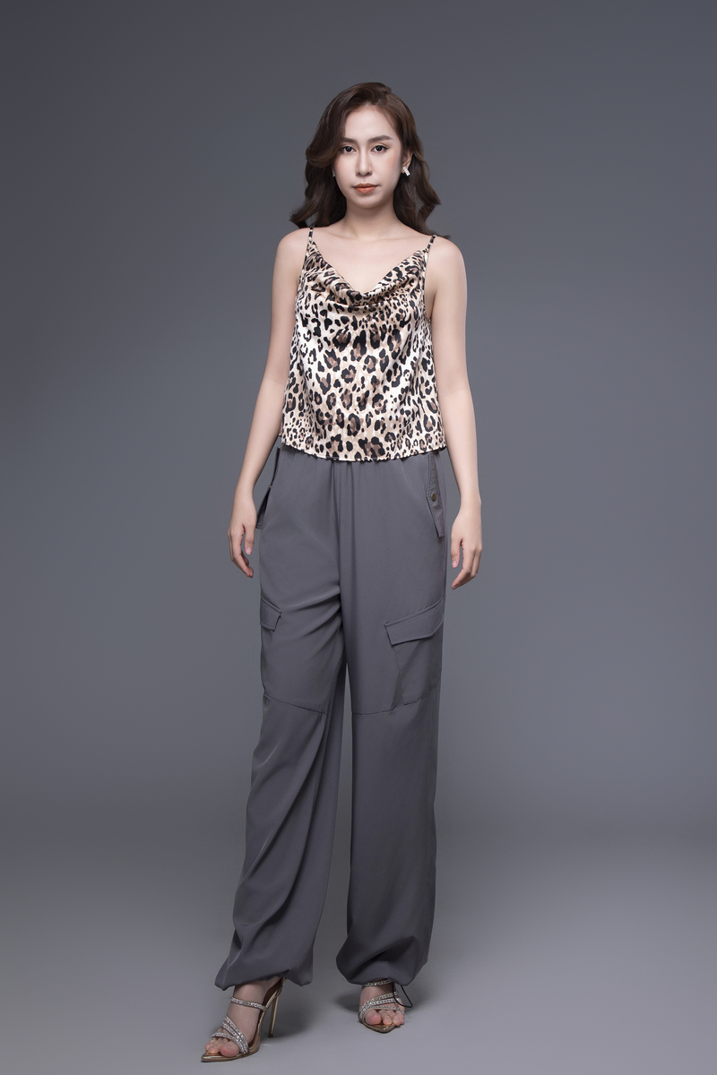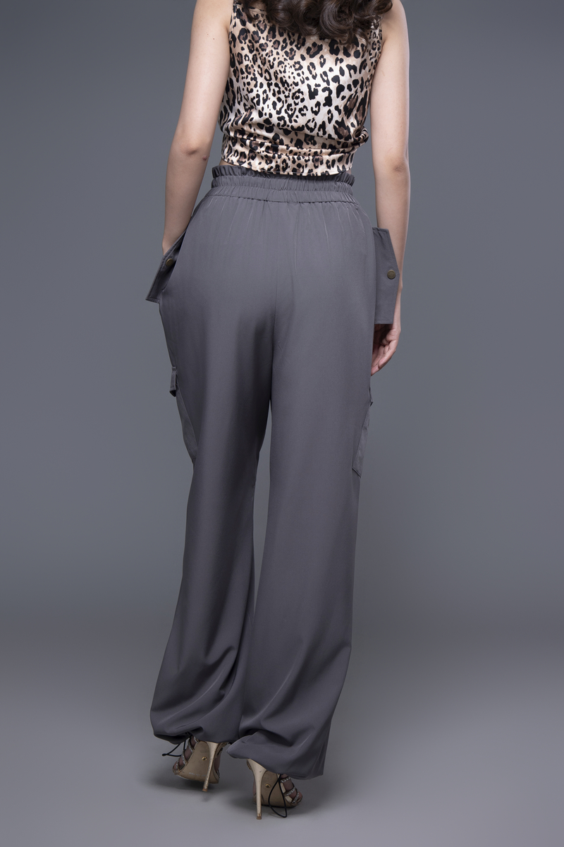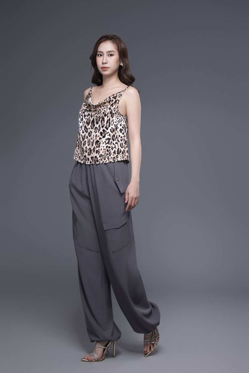 - Quần túi hộp màu xám đậm, cạp chun co giãn, có phần chun thu ở ống quần giúp dễ dàng thu gọn, form dáng rộng rãi che khuyết điểm tốt, mang lại sự năng động và thoải mái cho người mặc.