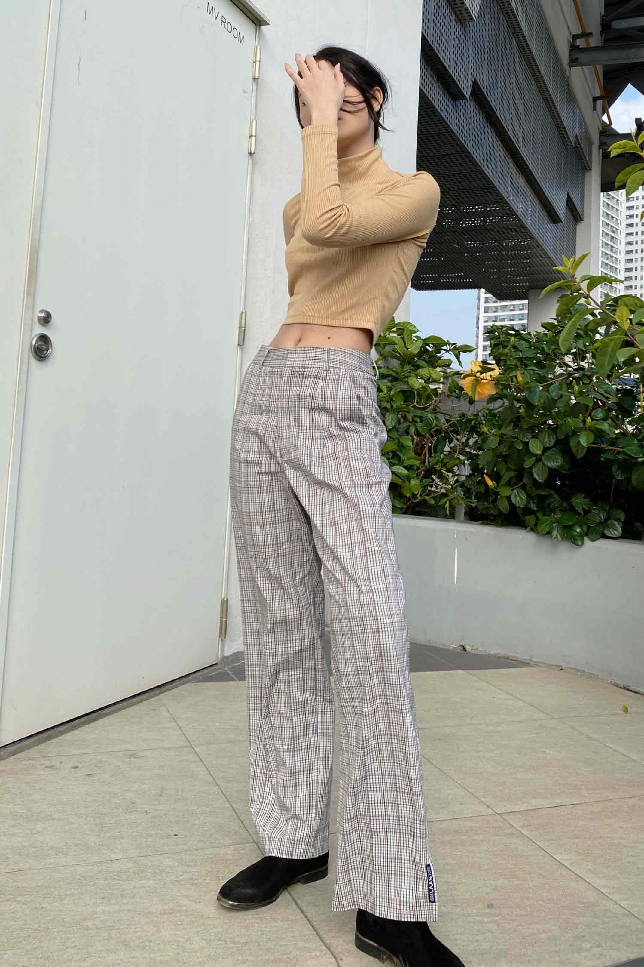 CHẤT LIỆU KAKI THUN CO GIẢN, MỀM ĐỨNG FORM QUẦN HOẠ TIẾT CARO FORM QUẦN ỐNG ĐỨNG, SUÔN THẲNG TẠO ĐÔI CHÂN DÀI PHẦN LAI QUẦN XẺ HAI BÊN TAG LOGO GẮN 2 BÊN ĐƯỜNG