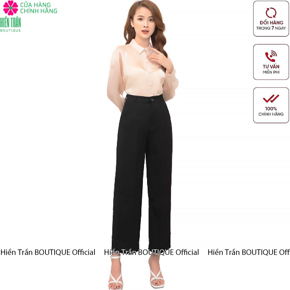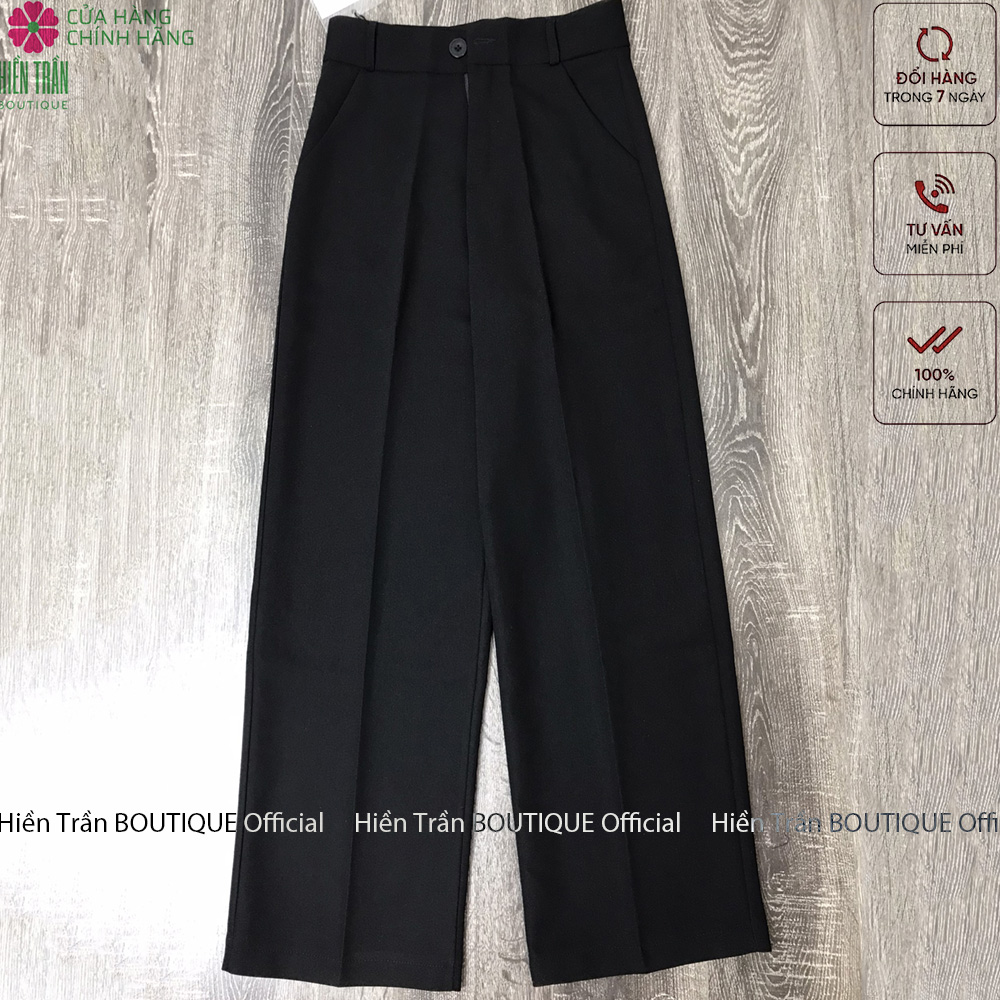 ✨Quần ống rộng Hiền Trần BOUTIQUE lưng cạp cao baggy vải nữ dài suông loe culottes xuông màu đen