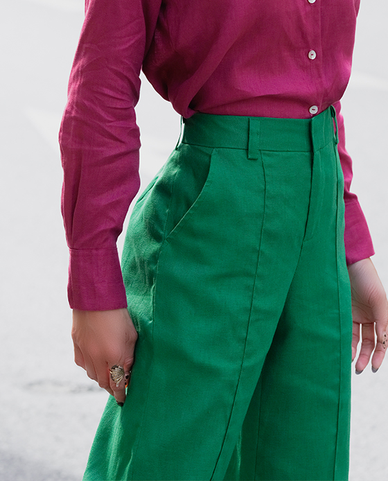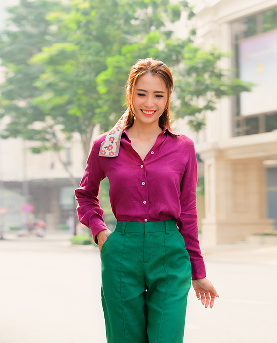 Màu cam đất mang đến một không gian sống động tươi vui và tràn đầy sức sống, giúp tinh thần con người phấn chấn. Một chiếc quần ống suông linen cam đất có thể kết hợp với hầu như mọi item từ áo sơ mi cho đến áo cổ lọ, áo hai dây. Nếu muốn đẩy mạnh hiệu ứng thị giác, bạn có thể phủ một tone màu từ đầu đến cuối cùng chiếc áo khoác blazer. Nếu thích tươi vui, bạn hãy phối cùng áo tone xanh chàm indigo, xanh lá, vàng hoặc hồng fuschia nóng bỏng. Và dĩ nhiên, tone cam đất luôn là tone màu ăn ý với phụ kiện màu bạc hoặc các màu tươi vui. Kiểu dáng quần ống loe Lưng rời, cao ngay vòng eo, bảng lưng 4cm, lưng thun 1/2 phía sau 2 túi 2 bên Cài bằng dây khoá kéo bên hông CHẤT LIỆU Linen 200gsm Nghệ nhân cắt may: Bảo Yến, Bích Hoà Cắt may thủ công tinh tế tại Hity Atelier, Nha Trang, Việt Nam Hiểu thêm về Linen: những tấm vải dệt từ ánh trăng Người mẫu Nguyễn Thu cao 170cm, vòng ngực 81cm vòng eo 63cm vòng mông 93cm - người mẫu đang mặc size S Gọi Ms. Hity +84909028606 để Ms. Hity hỗ trợ bạn chọn size khi có phân vân nhé! Hity cung cấp dịch vụ đặt may theo số đo và thiết kế riêng theo từng yêu cầu của quý khách. Mời bạn thoải mái trò chuyện cùng Ms. Hity tại +84909028606 để Hity được phục vụ bạn nhé! HƯỚNG DẪN SỬ DỤNG Để trang phục của bạn luôn sạch sẽ, mới đẹp và cùng góp phần bảo vệ môi trường giảm thải quần áo cũ, Ms. Hity khuyến khích bạn chăm sóc đúng cách quần áo của mình: Giặt máy ở nhiệt độ tối đa 30ºC, bọc trong túi giặt, vắt ở tốc độ thấp Không sử dụng nước tẩy / thuốc tẩy Phơi khô trên bề mặt phẳng Không sử dụng máy sấy Ủi ở nhiệt độ tối đa 150ºC (chế độ Cotton/ Linen) Ủi bằng bàn ủi hơi nước