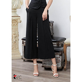 ✨Quần ống suông Tri'C Luxury kẻ xếp ly Đen Q020820