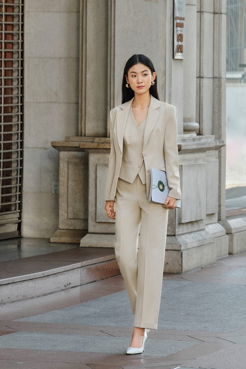 1. Thông tin sản phẩm: VALEN ELOISE - PHONG CÁCH THỜI TRANG CHỈN CHU VÀ CHUYÊN NGHIỆP Áo gile Valen form ôm, phối cùng quần Eloise ống suông cạp cao xếp ly giúp che