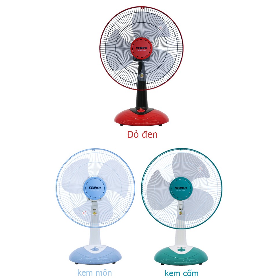 Quạt bàn Senko B1213 thiết kế nhỏ gọn, màu sắc bắt mắt, công suất hoạt động 40W làm mát hiệu quả với 3 cánh quạt, động cơ bạc thau với chất liệu 100% dây đồng