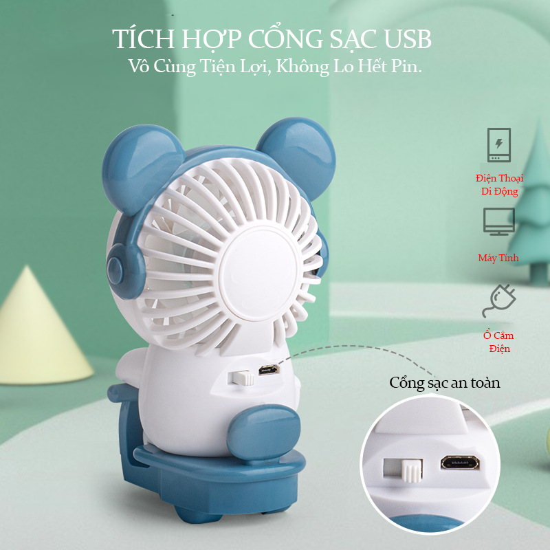 Quạt Mini Cầm Tay Bearbrick, Quạt Tích Điện Mini Để Bàn Decor Siêu Dễ Thương Có Sạc USB - Hàng Loại 1. CHính Hãng MINIIN ĐẶC ĐIỂM SẢN PHẨM: - Sạc USB di động,