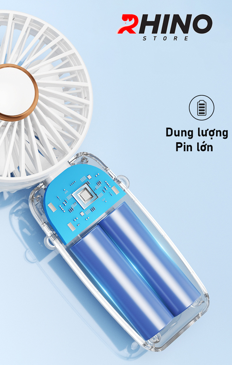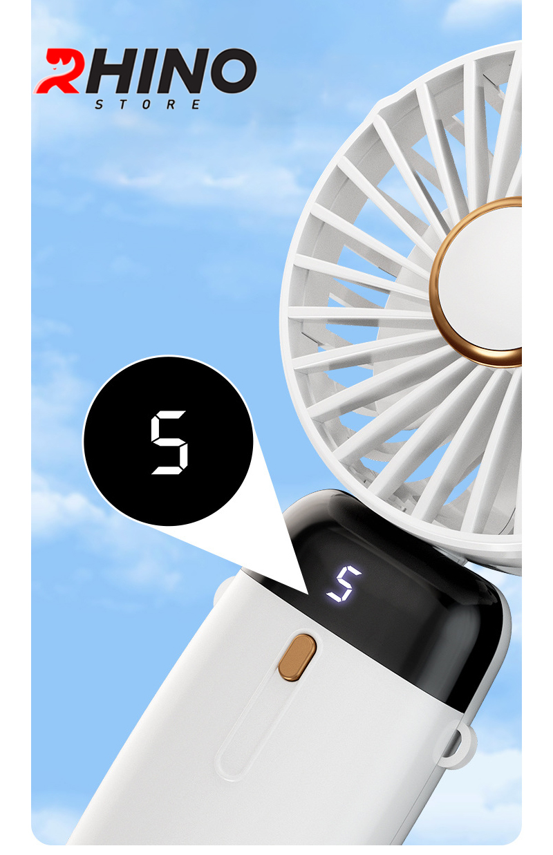 ✨Quạt cầm tay mini siêu mát Rhino F401 tích điện với 5 mức độ gió, kèm đế, dây treo, lượng pin cao - Hàng chính hãng