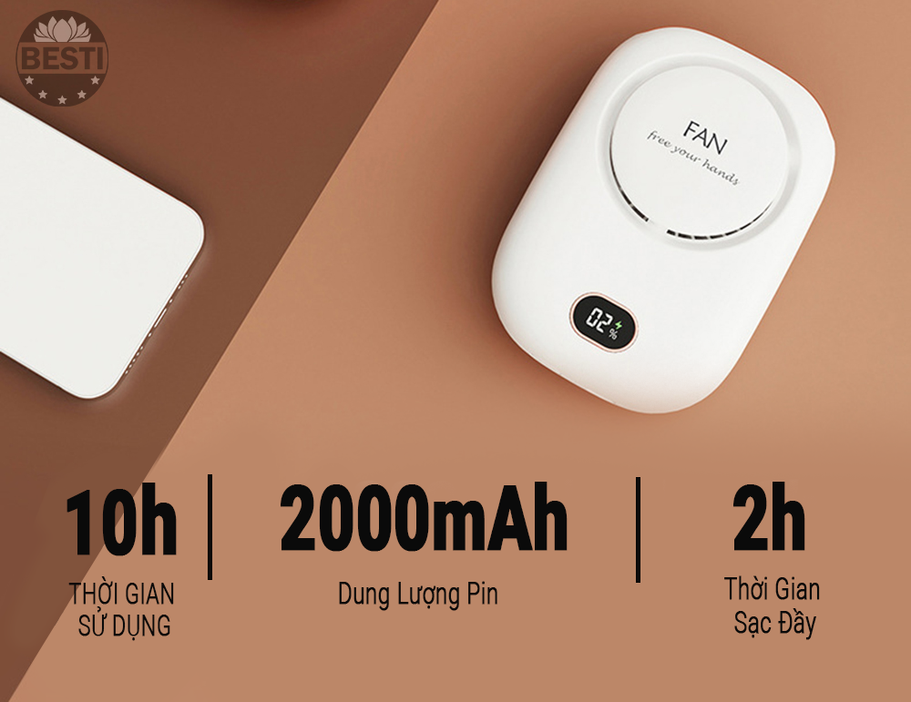 Pin 2000mAh , quạt hoạt động 10h mà không cần sạc.
