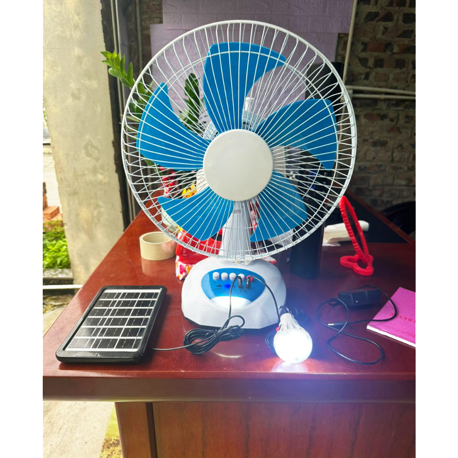 Quạt tích điện năng lượng mặt trời đa năng tích hợp cổng sạc ĐT, Tặng 2 bóng đèn - Giá 950k bao ship