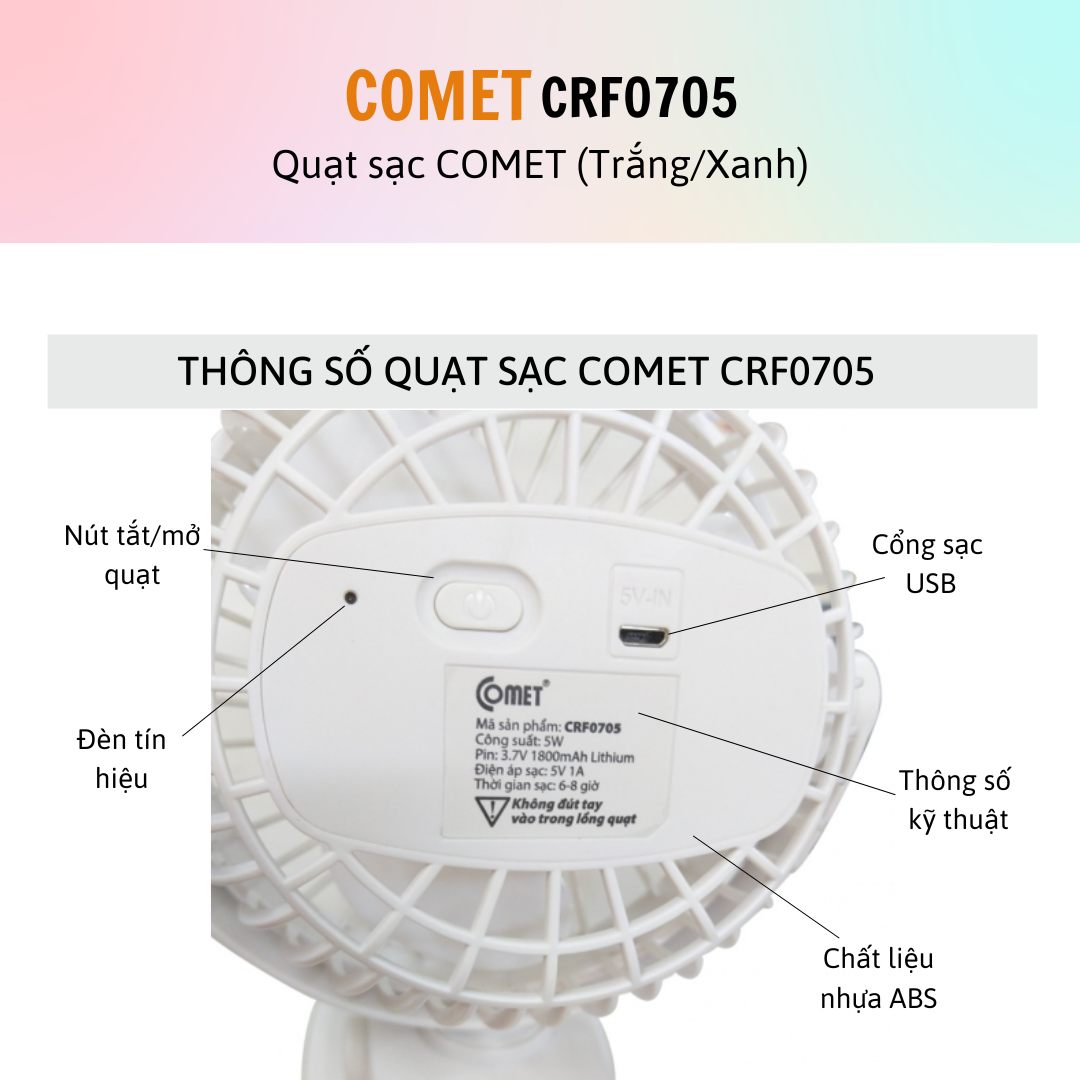 MÔ TẢ SẢN PHẨM QUẠT SẠC COMET CRF0705