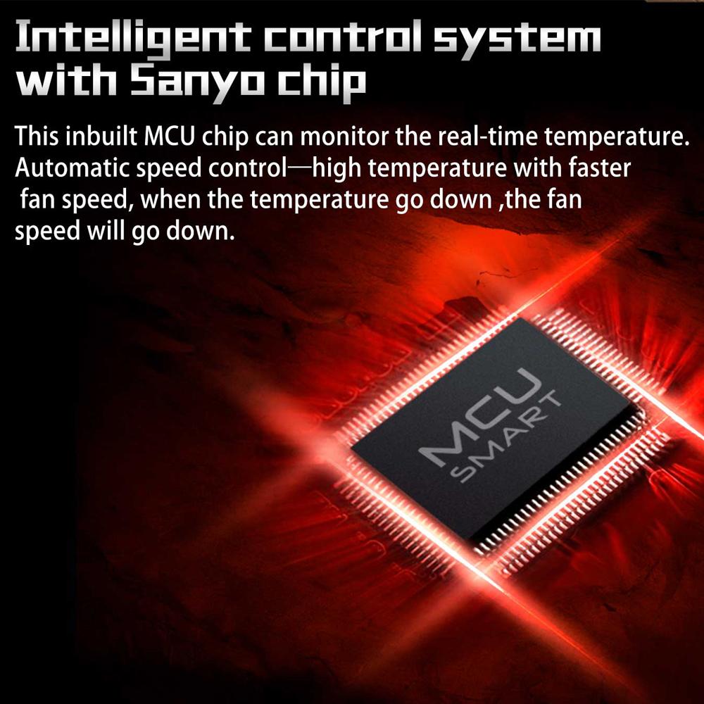 Built-in MCU Chip can monitor the real-time temperature and automatically control the speed. The higher the temperature is, the higher the fan speed.