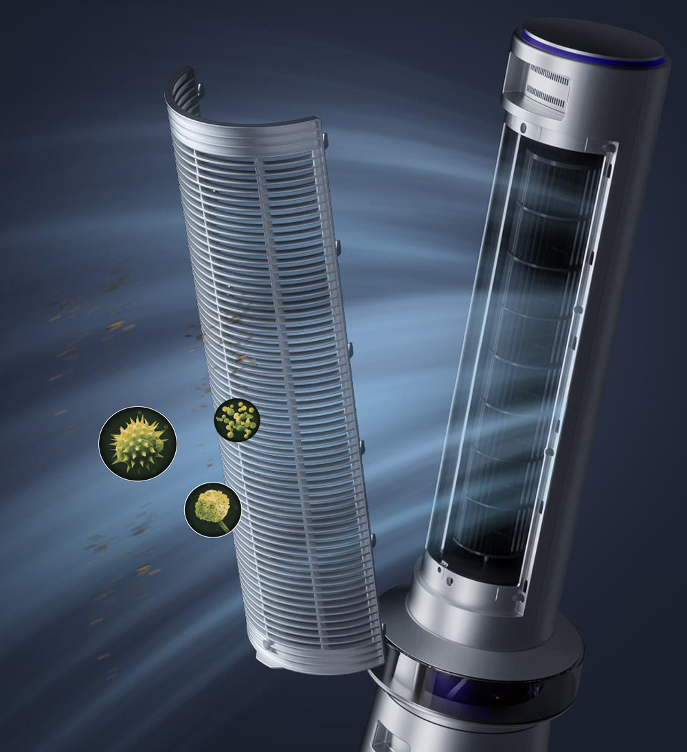 Sử dụng công nghệ Air Multiplier tạo ra luồng không khí mạnh mẽ liên tục. Luồng gió mát mà không cần cánh quạt quay nhanh, an toàn cho trẻ em, vật nuôi. Hoạt động êm