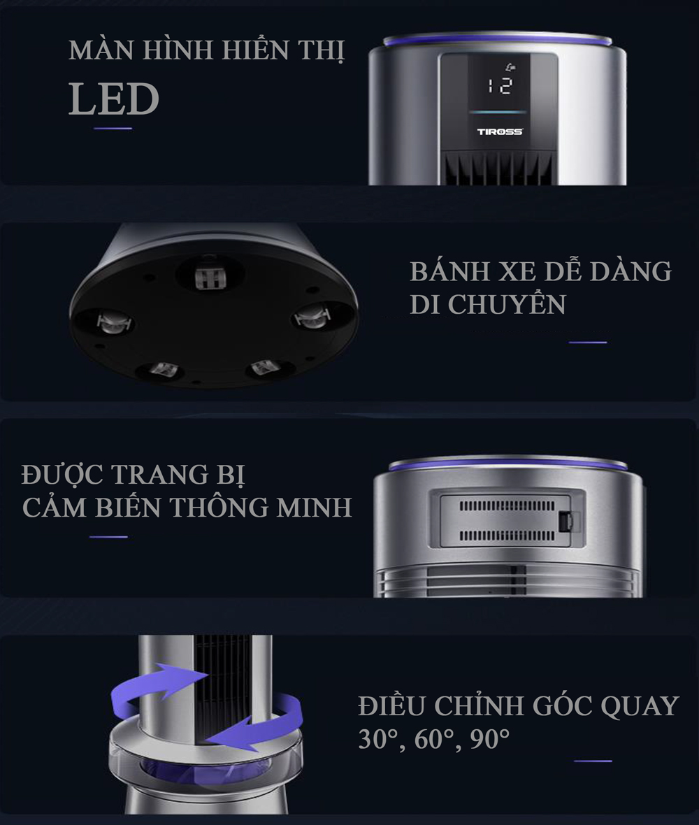 Giới thiệu quạt tháp không cánh và lọc không khí Tiross TS9176 Tiross TS9176 là chiếc quạt tháp đa năng được tích hợp khả năng lọc không khí hiện đại vừa làm mát vừa mang đến không khí