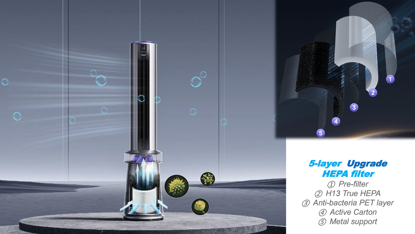 Quạt tháp kèm lọc không khí 2 trong 1 sử dụng bốn mùa.