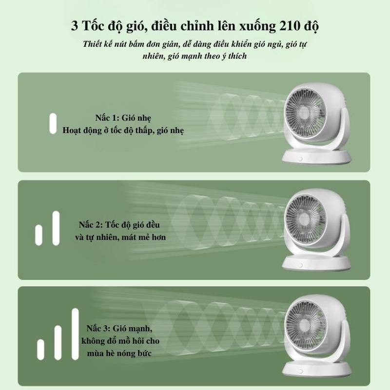 ✨Quạt tích điện để bàn, động cơ không tiếng ồn, xoay 180 độ, 3 cấp độ gió, cổng sạc nhanh Type-C - hàng chính hãng