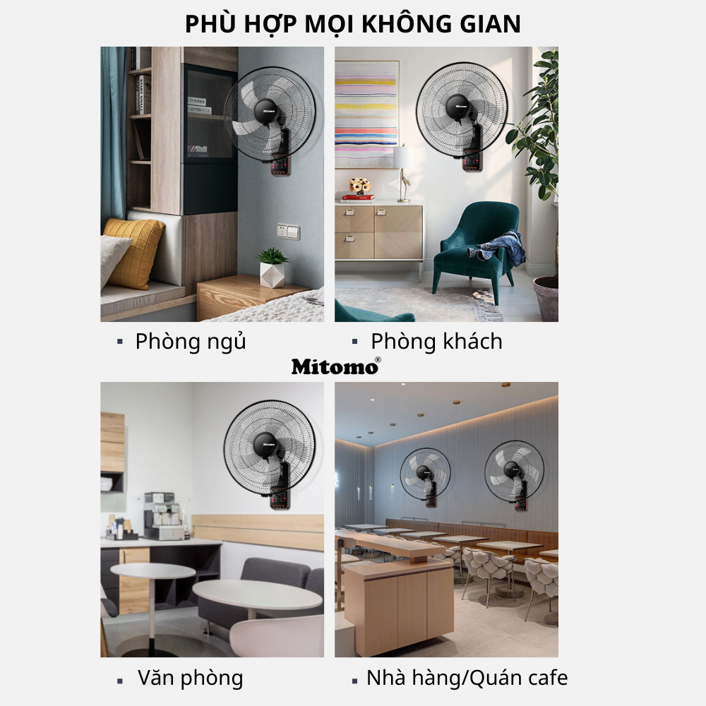 Hiện tại công ty phân phối 2 Model quạt treo tường Mitomo như sau: