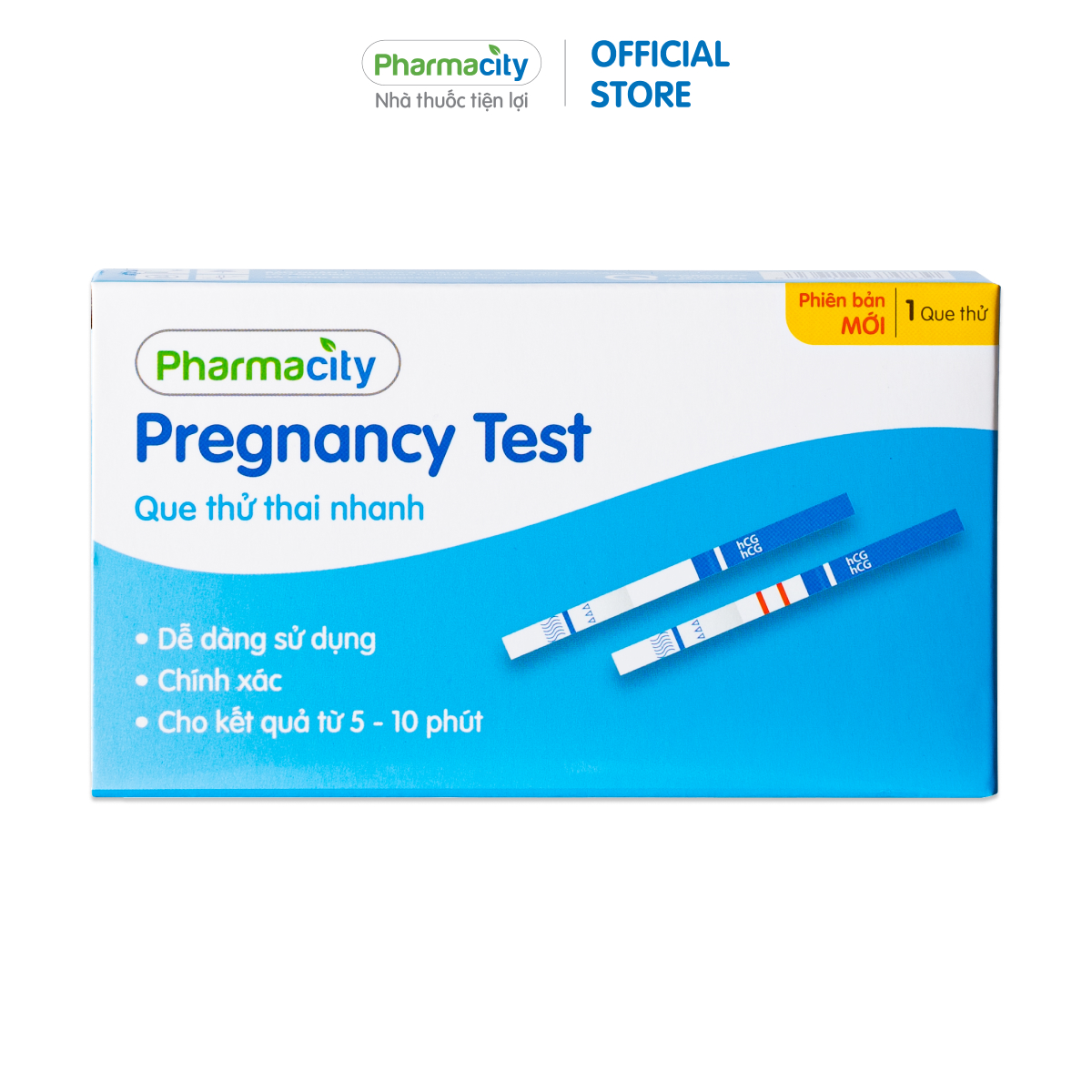 - Không đạt: Trên que thử không xuất hiện vạch ngang màu hồng nào (do thao tác thử sai, mẫu nước tiểu không đạt hoặc bảo quản không đúng). Nên thử lại bằng que thử mới. Lưu ý Đọc kỹ tờ hướng dẫn sử dụng đi kèm sản phẩm trước khi sử dụng. Một số ít trường hợp cho kết quả có thai giả do người thử đang dùng các loại thuốc an thần, lợi tiểu, không co giật, thuốc có chứa hCG hoặc người (chiếm tỷ lệ nhỏ) có nồng độ hCG cao hơn bình thường, Để xa tầm tay trẻ em. Bảo quản: Bảo quản ở nhiệt độ 4 - 30°C, tránh ánh nắng. Số công bố: 230000985/Pcbb-Hcm. Sản phẩm được sở hữu bởi: CÔNG TY TNHH PHÁT TRIỂN XUẤT NHẬP KHẨU THÀNH PHÁT Địa Chỉ: 56/8 Tân Thới Nhất 08, Phường Tân Thới Nhất, Quận 12, Thành phố Hồ Chí Minh, Việt Nam Được sản xuất bởi: CÔNG TY TNHH CÔNG NGHỆ CAO SU VIỆT NAM Địa Chị: Lô K4, Đường số 10, Khu công nghiệp Hải Sơn (GĐ 3+4), Ấp Bình Tiền 2, Xã Đức Hòa Hạ, Huyện Đức Hòa, Tỉnh Long An Phân phối bởi: CÔNG TY CỔ PHẦN DƯỢC PHẨM PHARMACITY Địa Chỉ: 248A Nơ Trang Long, Phường 12, Quận Bình Thạnh, Thành phố Hồ Chí Minh, Việt Nam
