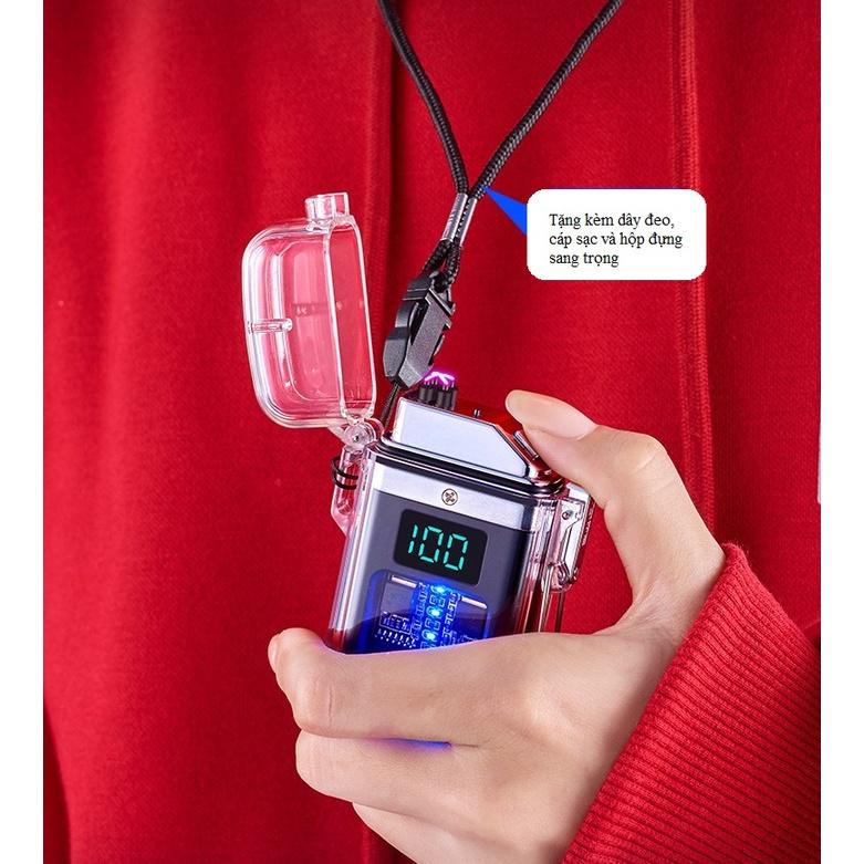 Hộp Quẹt Sạc Điện Plasma 3 Chế Độ Chống Nước Chống Gió Hiển Thị Pin