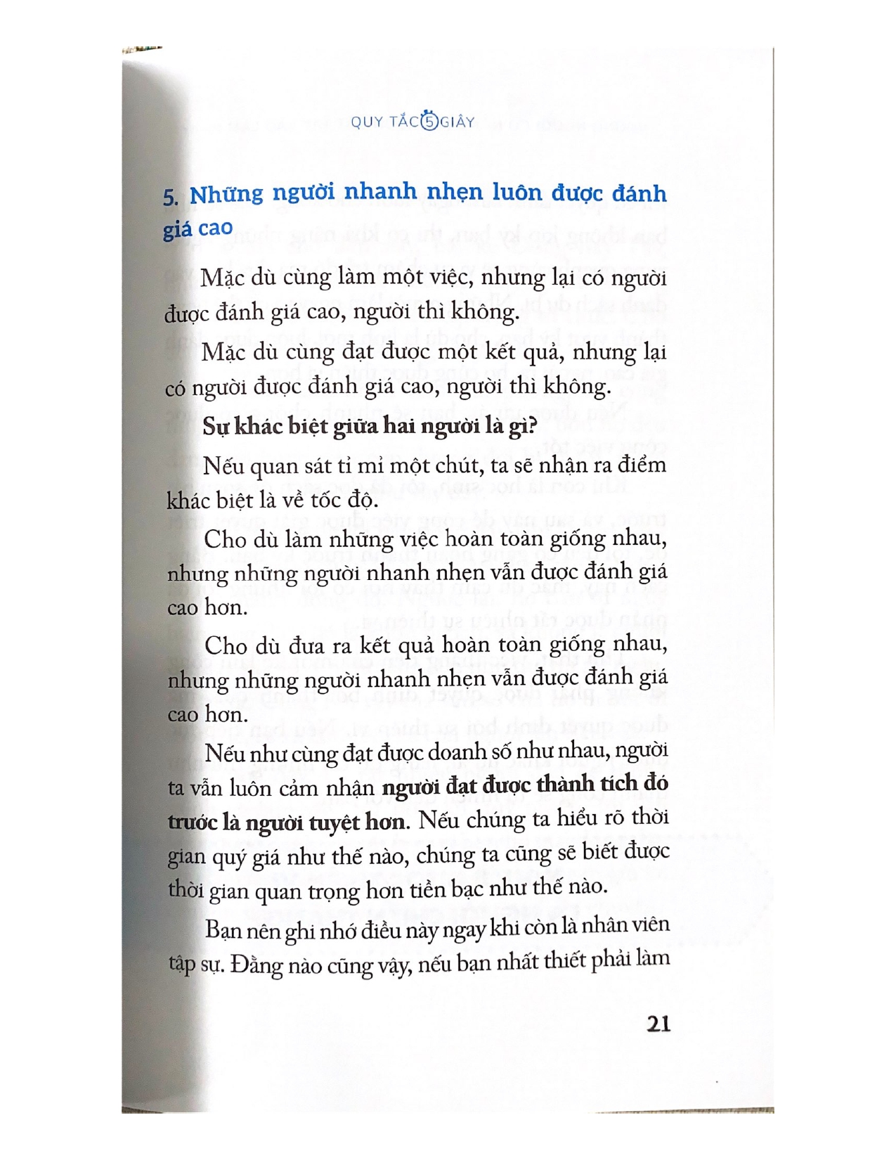 Quy tắc 5 giây là cuốn bí kíp dành cho những ai thiếu quyết đoán, chưa có đủ dũng khí và sự tự tin để hành động. Với 50 quy tắc ngắn gọn và dễ hiểu, cuốn sách này sẽ giúp bạn điều chỉnh lại định hướng của mình trong công việc, đời sống, và các mối quan hệ để hướng tới kết quả tốt nhất.