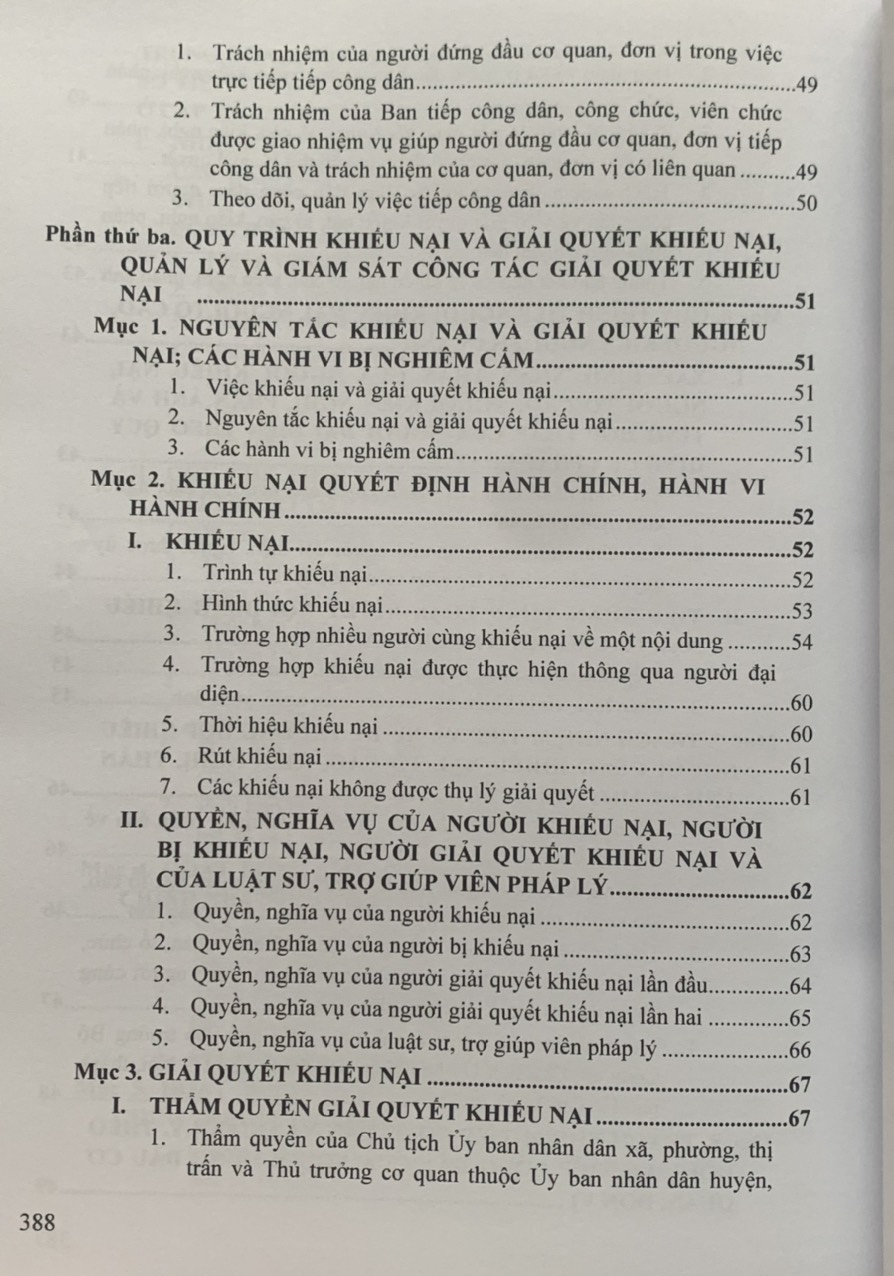 Nội dung cuốn sách được hệ thống khá toàn diện, khoa học, không phải trích dẫn toàn văn văn bản quy phạm pháp luật mà hệ thống theo từng nội dung vấn đề rất thuận tiện cho việc tra cứu. Đây có thể coi như là một cuốn cẩm nang pháp lý phục vụ đắc lực cho công tác xử lý đơn thư khiếu nại, tố cáo, kiến nghị, phản ánh và tiếp công dân.