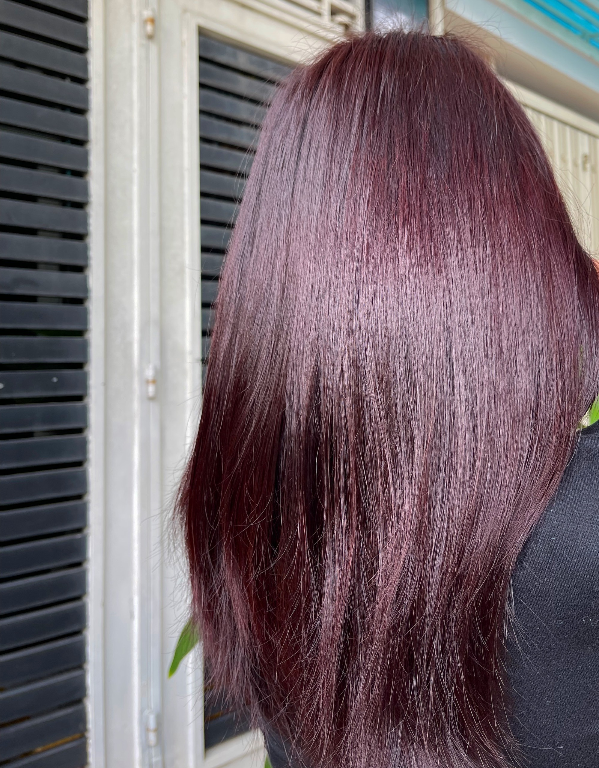 - Trên nền tóc đen: màu nâu ánh đỏ (trong nhà sẽ trầm hơn, ra nắng sẽ ánh đỏ sáng hơn)