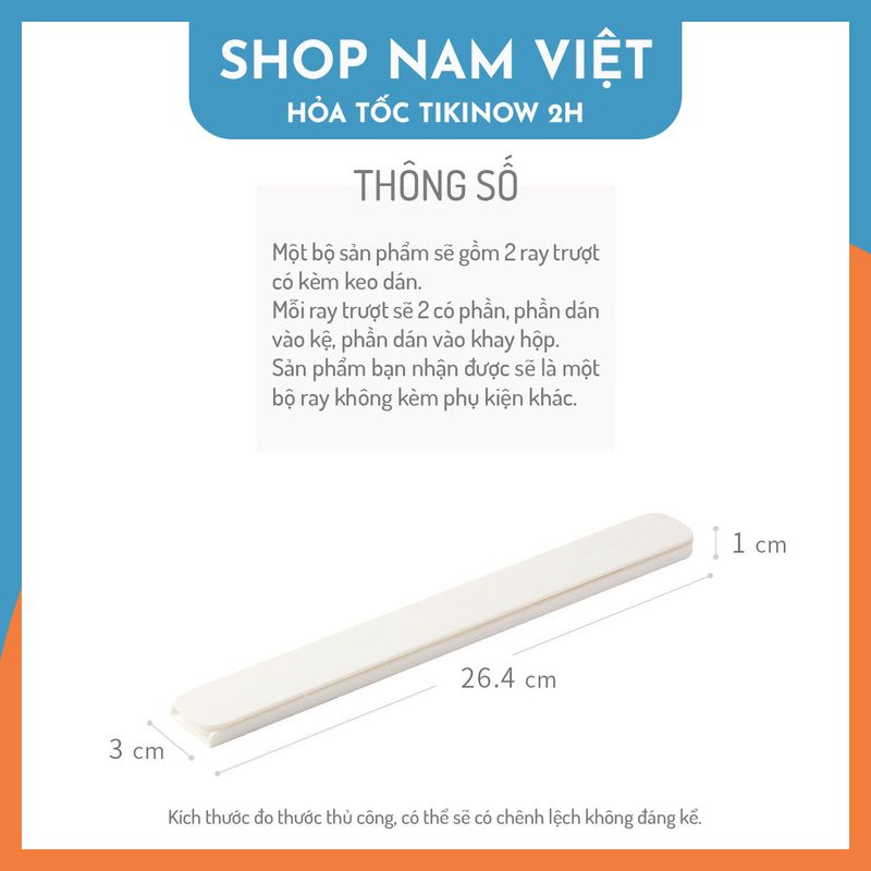 Kích thước (DxRxC): 26.4cm x 3cm x 1cm (cho mỗi ray)