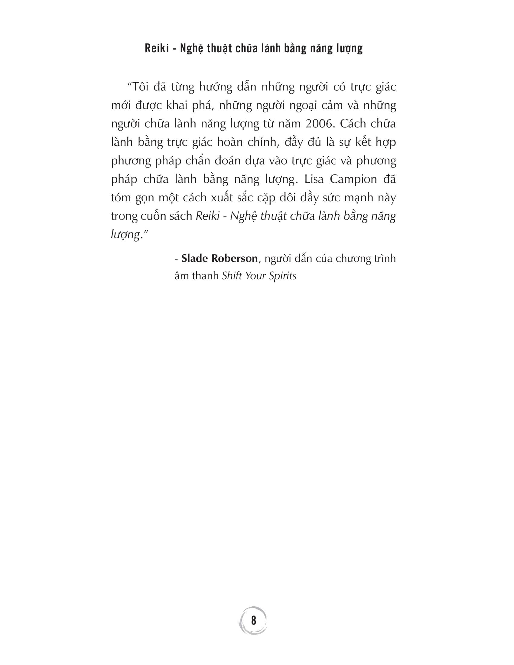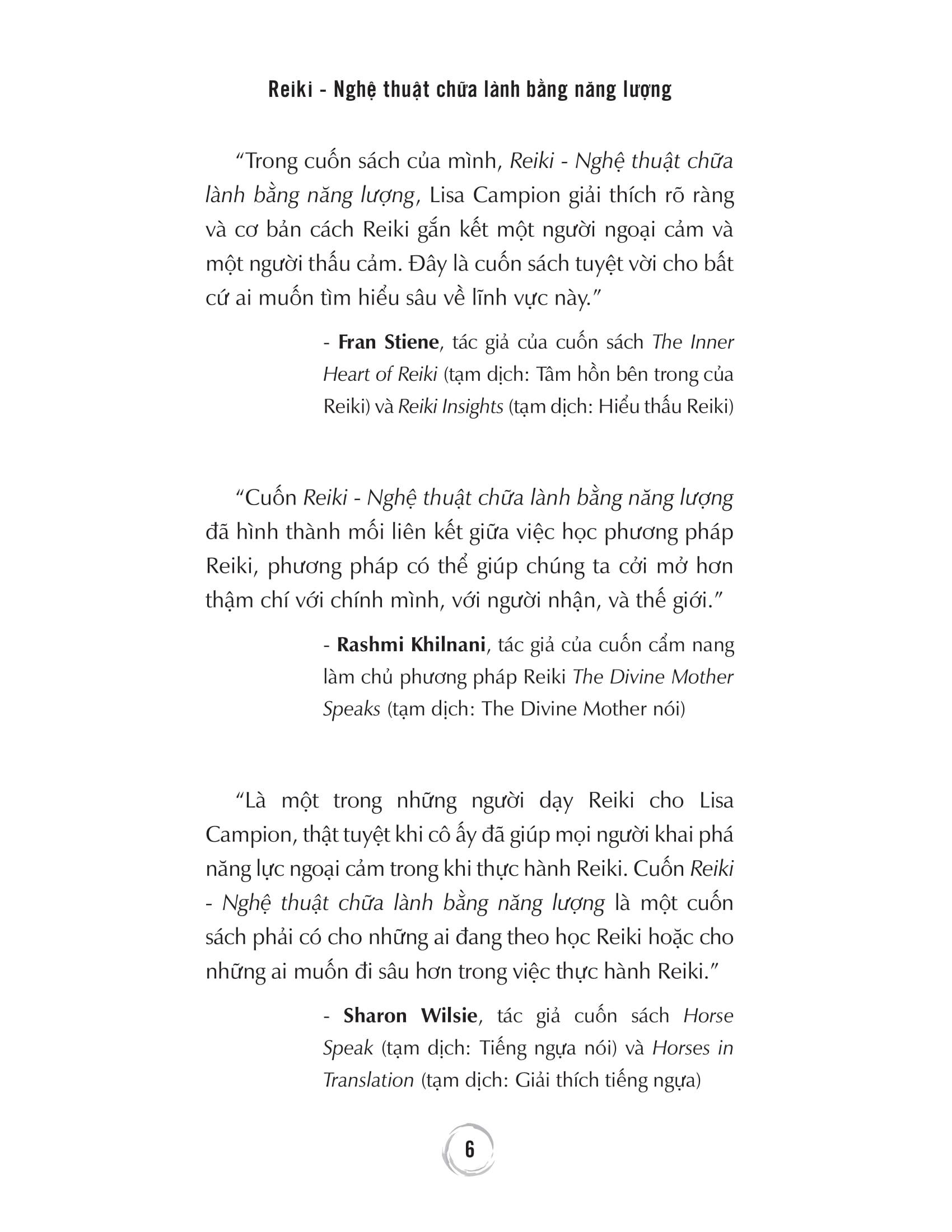 Nếu bạn yêu thích phương pháp Reiki và muốn nâng Reiki lên mức độ cao hơn, bạn đã chọn đúng cuốn sách mình cần. Lòng trắc ẩn và kinh nghiệm của một giảng viên, một người chữa lành, một người ngoại cảm, và một tác giả của Lisa sẽ biến hành trình thực hành Reiki đi sâu hơn vào việc chữa lành, biến điều đó thành một trải nghiệm làm thay đổi cuộc đời.