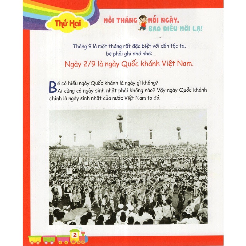 Bộ sách được biên soạn theo nội dung chương trình giáo dục dành cho lứa tuổi mầm non từ 3-6 tuổi. Nội dung mỗi cuốn được chia theo từng ngày trong tuần: 7 chuyên mục tương ứng với 7 ngày trong tuần, giúp trẻ không nhàm chán vì phụ huynh có thể tương tác cùng con các nội dung khác nhau mỗi ngày. Cụ thể nội dung mỗi ngày như sau: