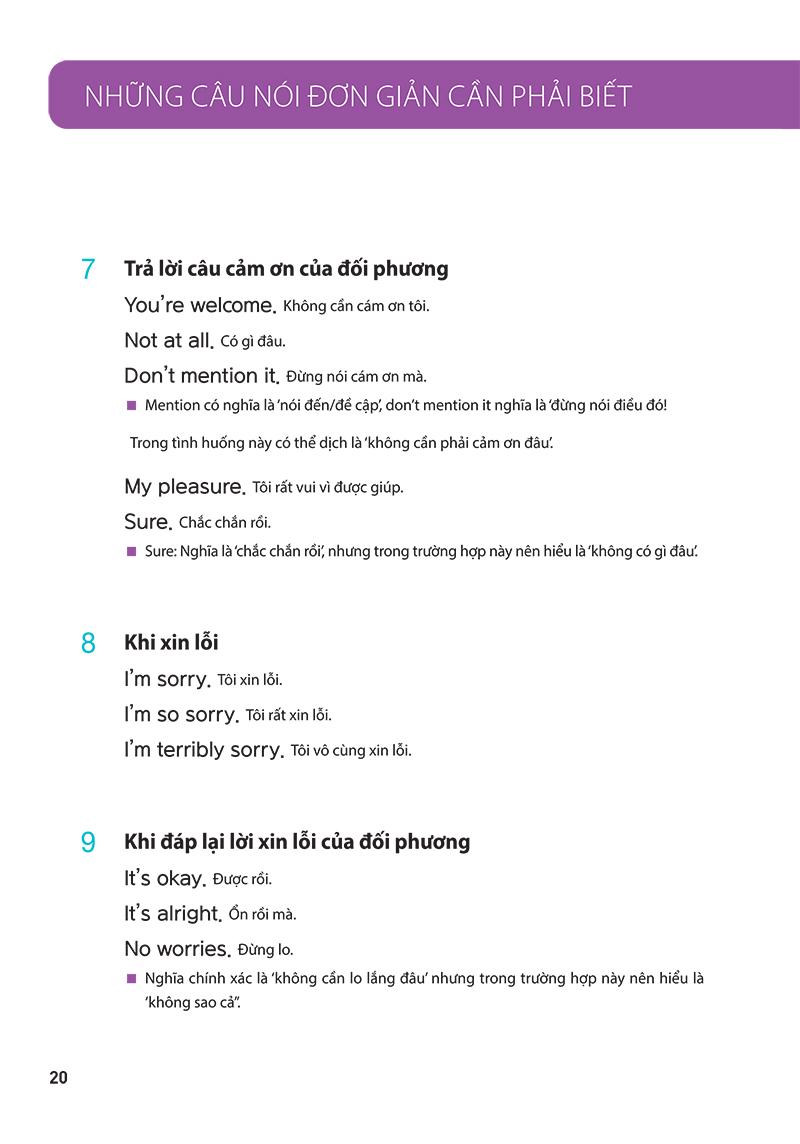 • Tặng ngay Ebook ” Cấp tốc chinh phục thành ngữ song ngữ Anh Việt hay nhất”. Nội dung cuốn sách gồm có những phần sau: Những điều cần biết Trong phần này chúng ta sẽ khám phá những điểm khác biệt giữa tiếng Việt với tiếng Anh và những điều cơ bản nhất mà người bắt đầu học tiếng Anh nhất định phải học. Bài học Ở phần Bài học, các bạn sẽ được học những từ vựng, mẫu câu được sử dụng rất nhiều trong đời sống sinh hoat thường ngày của người bản xứ theo từng chủ đề, về giới thiệu bản thân, miêu tả về người khác hoặc sự vật, cách đặt câu hỏi và cách nói về những việc xảy ra trong cuộc sống của chính bạn. Học xong phần này, bạn có thể diễn đạt những điều mình muốn nói bằng tiếng Anh. Tìm hiểu thêm Đây là một phần để người học có thể mở rộng và củng cố kiến thức tiếng Anh của mình về ngữ pháp và những từ vựng tiếng Anh cơ bản thông dụng nhất. Còn gì tuyệt hơn khi vừa ngồi nhâm nhi ly trà chanh mà vẫn có thể học tiếng Anh! Vì những nội dung trong sách được chuyển hóa thành audio với giọng đọc của người bản ngữ và tích hợp với app trên điện thoại nên dù bạn không giở sách ra đọc thì vẫn có thể học qua App MCBooks và nói ra những điều mình muốn bằng tiếng Anh. >>> Đặt sách ngay để thoải mái nói những gì mình muốn bằng tiếng Anh nào các bạn!