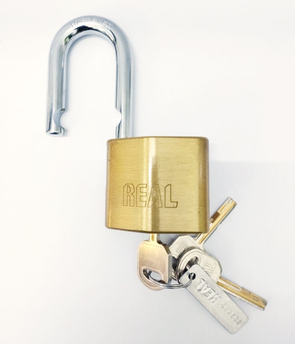 ✨RL8710-01 Khóa treo Real hình thoi 55mm bằng đồng thau sơn bóng màu thau, chống cưa, chống trộm