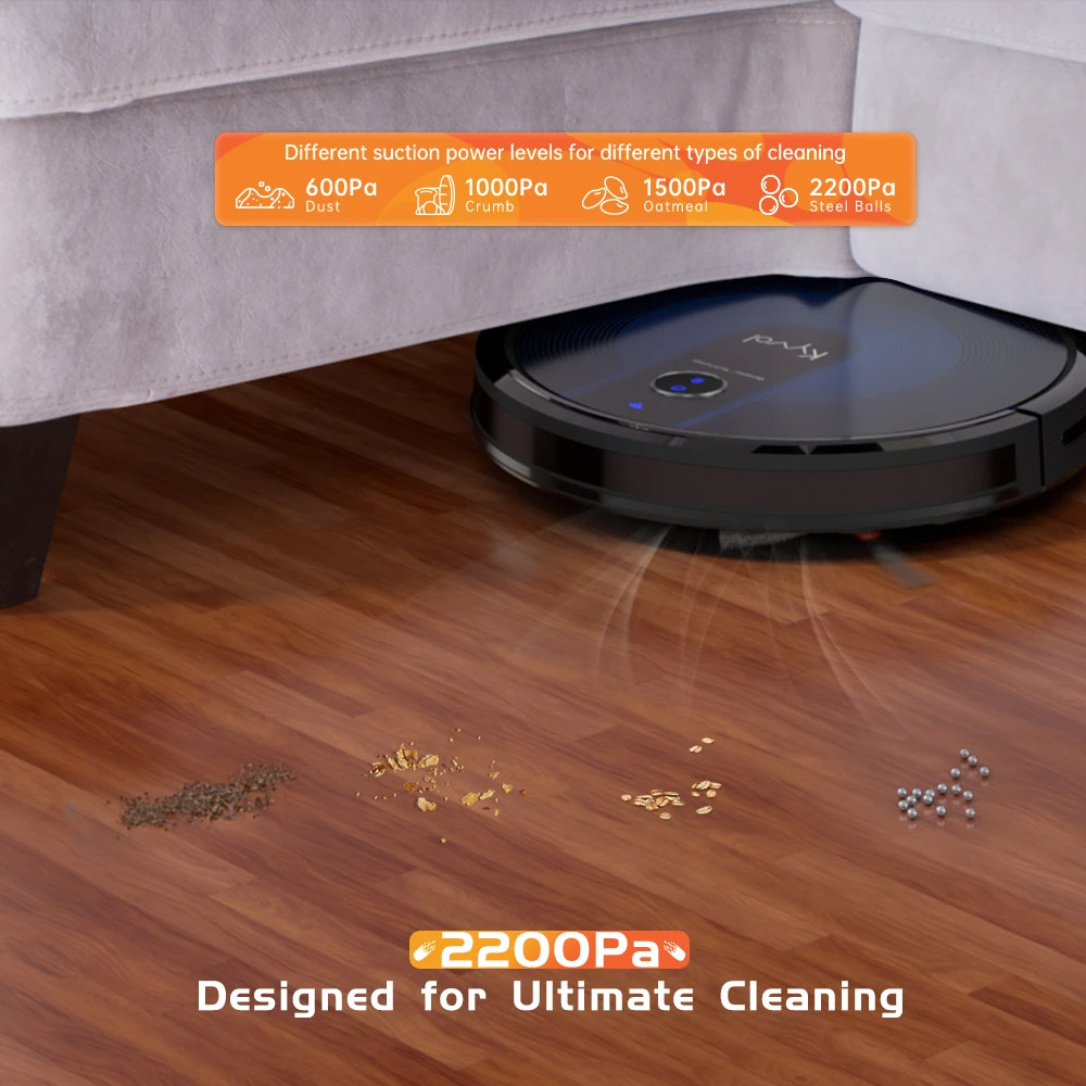 - Công nghệ điều hướng ElegantGyro với cảm biến - Công suất động cơ 1800 PA, 7 chế độ, Ứng dụng có thể lập trình, Alexa và Trợ lý Google - Quét, hút bụi, lau