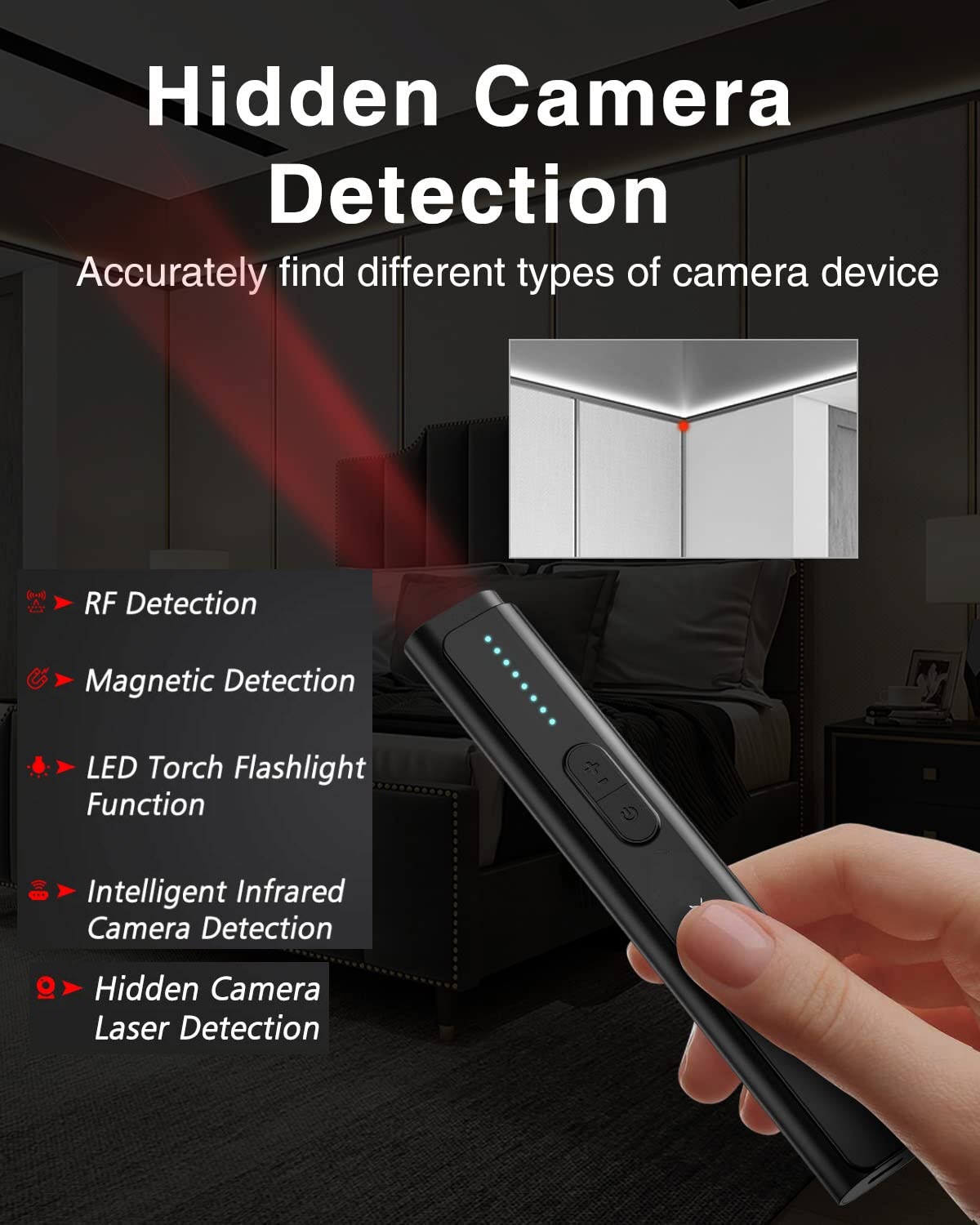 - "Bắt sóng" mọi thiết bị phát wifi trong khu vực, kể cả những camera ẩn được kết nối wifi.
