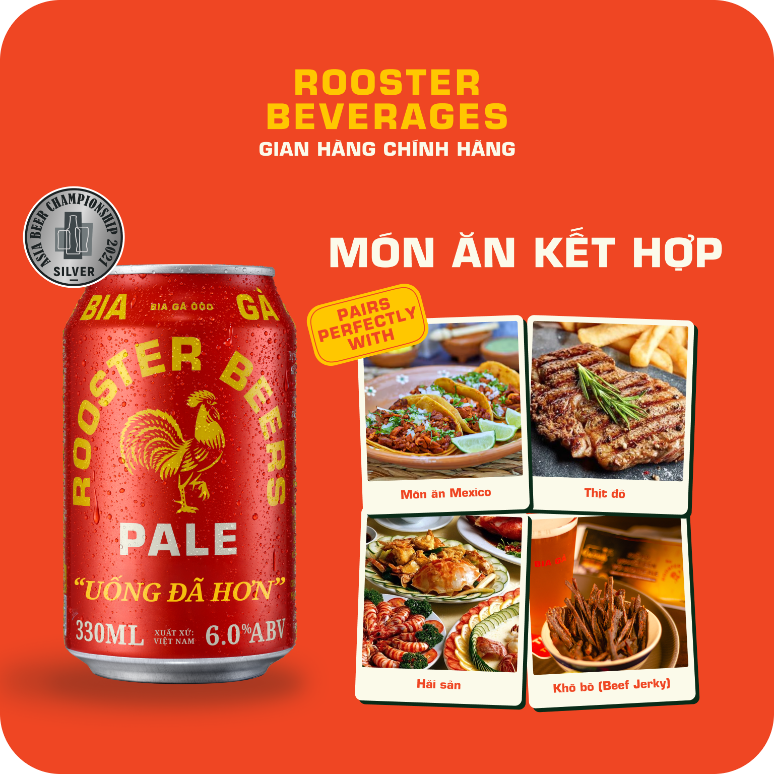 Mua tại TiktokRooster Beer Pale - Vị Nồng Nàn Dễ dàng chinh phục cả những người sành bia khó tính Rooster Pale mang đến cho bạn trải nghiệm thưởng bia tinh tế với nền bia sệt quấn quýt nơi đầu lưỡi, hậu vị đắng nhẹ và hương hoa bia nồng nàn. Ghi chú • Bia Pale phong cách Mỹ • Được nấu từ 4 loại lúa mạch và 4 loại hoa bia • Nền bia sệt. Hậu vị đắng nhẹ • 6.0% ABV – 32 IBU • Dùng kèm các món nướng: xúc xích, hải sản và thịt bò. VỀ ROOSTER BEERS: Là những chuyên gia nấu bia đầy đam mê, sáng tạo và nhiệt huyết, chúng tôi mong muốn mang đến cho khách hàng những dòng bia thủ công mang hương vị cổ điển tuyệt hảo. Mỗi ngụm bia Rooster mát lạnh sẽ là một trải nghiệm thuởng thức đáng nhớ, kể cả đối với những người sành bia lâu năm.