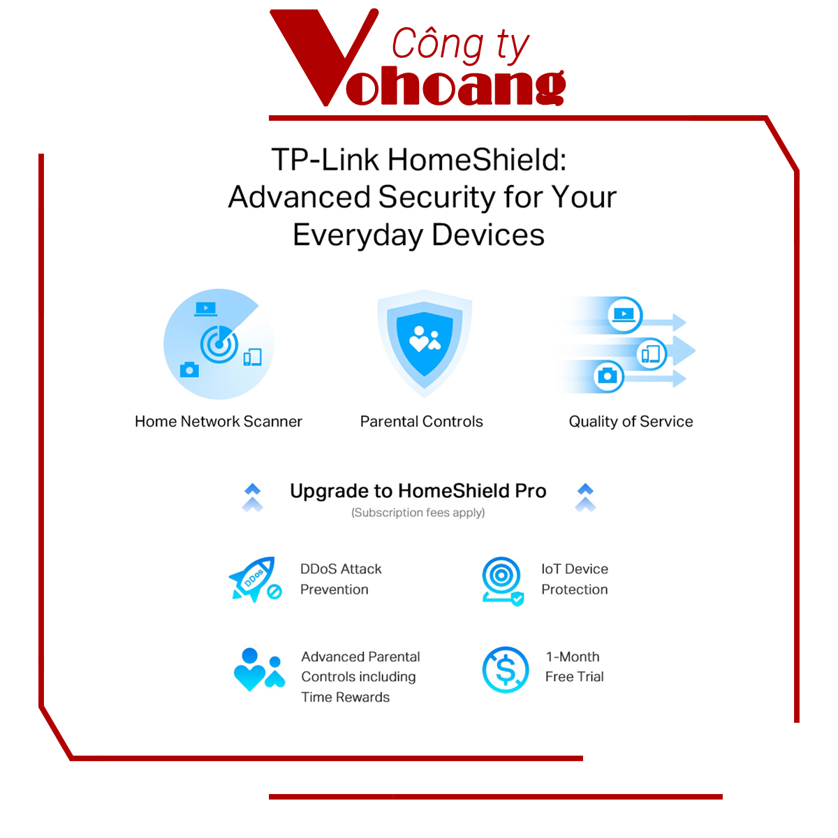 - TP-Link HomeShield: Bảo mật nâng cao chống lại các mối đe dọa an ninh mạng mới nhất.