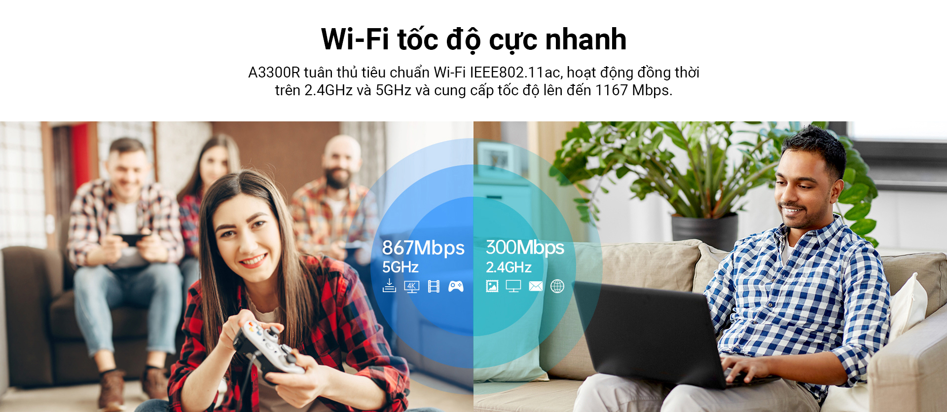 867Mbps trên băng tần 5G và 300Mbps trên băng tần 2.4G