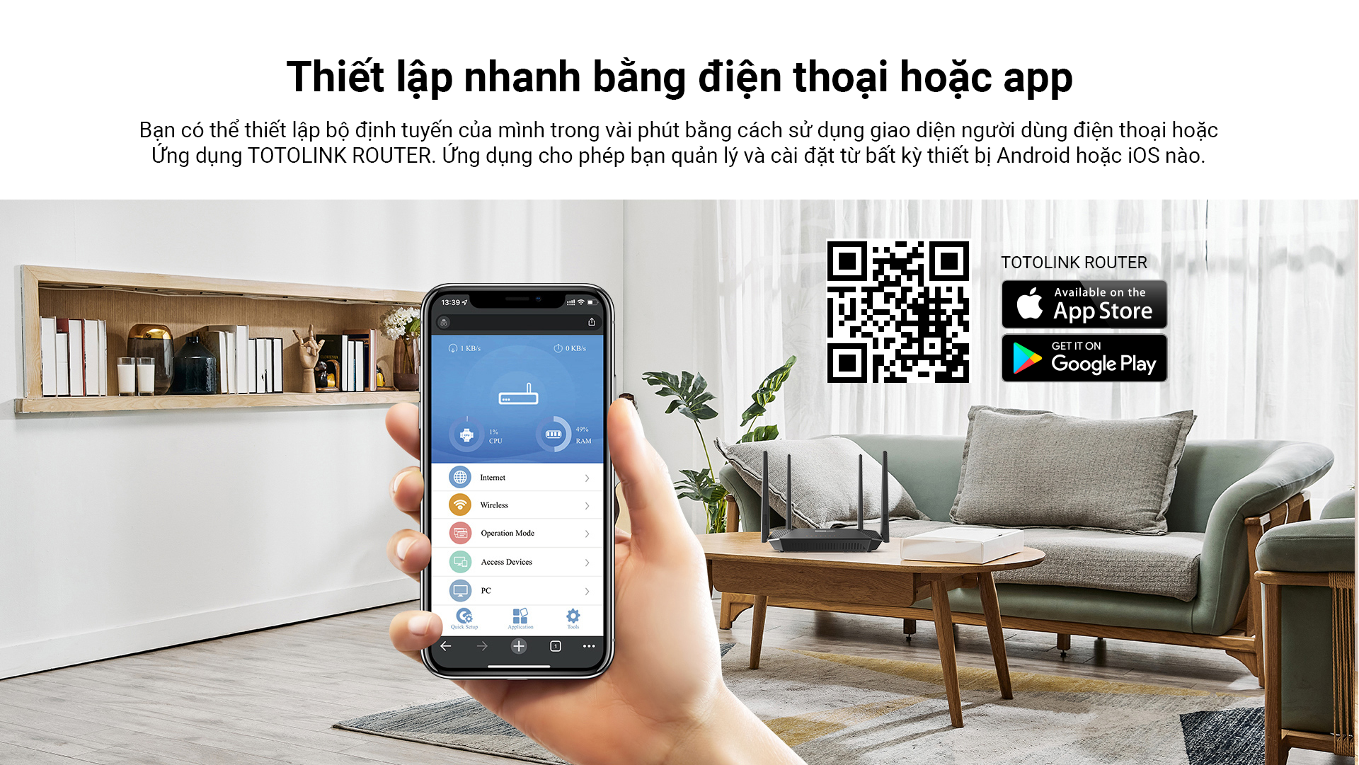 App quản lý và cài đặt hiện đại TOTOLINK ROUTER (*)