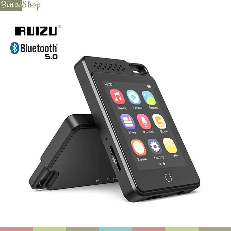 - Máy nghe nhạc RUIZU D19 thiết kế nhỏ gọn, kiểu dáng thể thao, màn hình màu TFT 2,4 inch cảm ứng mang lại hình ảnh sắc nét, kết nối bluetooth 5.0 ổn định trong phạm vi
