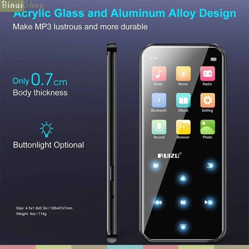 Ruizu D19 - Máy Nghe Nhạc Lossless, Bluetooth 5.0, FM , Pin 50 Giờ, Bộ Nhớ Trong 16GB