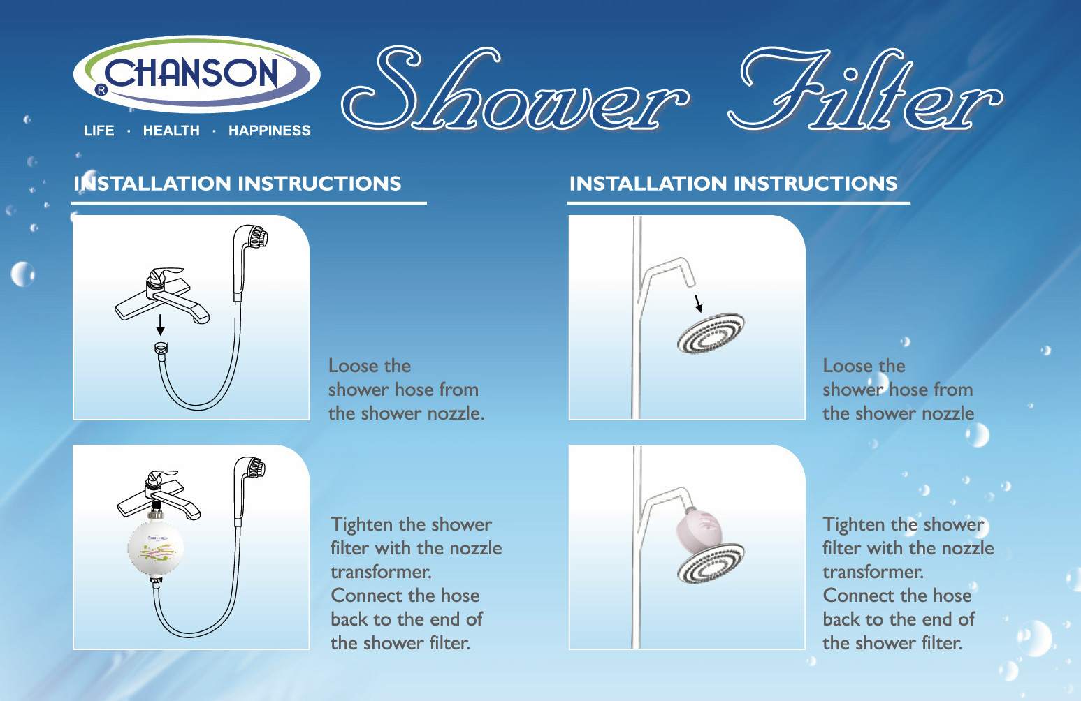 - Calcium Sulfite CaSO3 trong bộ lọc BF-007 của Chanson được lựa chọn loại tốt nhất để loại bỏ clo trong nước tắm trong thời gian ngắn nhất. Ngoài ra, 100g CaSO3 có thể dùng từ 6 – 12 tháng nhưng so với 100g KDF (thường được dùng trong các loại lọc khác) và than hoạt tính thì chỉ dùng được trong 2 - 3 tháng Chloroform có trong nước sẽ được hít vào phổi hoặc thẩm thấu vào da khi tắm nước nóng: CaSO3 cũng tách lọc hiệu quả hơn KDF và các loại vật liệu lọc khác. 2. Tấm hướng dòng cánh xoáy là phát minh độc quyền của Chanson, có cấu tạo đặc biệt tạo dòng xoáy rối nước khi đi qua nó và cũng tạo ra ion âm có tác dụng làm sạch máu, cải thiện hệ miễn dịch, tăng tuần hoàn máu, giảm stress, tăng cường hệ thần kinh thực vật, tăng cường collagen cơ thể, giúp giấc ngủ tốt hơn, cải thiện độ thẩm thấu của màng chất nguyên sinh của mỗi tế bào để giúp hệ thống tuần hoàn làm việc hiệu quả hơn… Các ion âm (còn gọi là anion) được xem là “vitamin trong không khí” bởi có chức năng tăng cường năng lượng sống, giúp chúng ta thấy trẻ khỏe, sảng khoái. Đây là một phần trong các lĩnh vực điện y (electromedicine), điện từ học (electromagnetic) hay từ trường trị liệu (bioelectromagnetic). Khu vực gần thác nước hay trong rừng có rất nhiều ion âm. Nước chảy rối thường bị phân tán và tạo ra các phân tử hay cụm phân tử nước mang ion âm lơ lửng trong không khí. Cây trong rừng cũng tạo ra các phân tử nước mang ion âm lấp đầy trong không khí. Đó là lý do vì sao những người sống gần hoặc trong rừng thường có sức khỏe tốt và tràn đầy năng lượng. 3. Các hạt gốm (Energy stone) phát ra tia hồng ngoại xa để kích hoạt các phân tử nước, giúp nước thẩm thấu tốt và sâu hơn vào da, vào mạch máu. Nhờ đó, nước cũng làm da mát mịn, sáng đẹp. Hạt gốm cũng có tác dụng làm giảm kích thước cụm phân tử nước, giúp thẩm thấu và dưỡng ẩm da tốt hơn, làm sạch sâu bên trong da hiệu quả hơn, làm tóc khô gãy được mềm và mượt hơn. Tác dụng tổng thể của bộ lọc có thể tổng hợp như sau 1/- Ngăn clo tạo gàu, giúp da mát mượt, ít tạo vảy đối với da khô 2/- Dưỡng ẩm tóc và giữ màu tóc nhuộm, làm tóc mềm mượt, khỏe mạnh, đẹp 3/- Giảm các triệu chứng trên da như kích ứng, ngứa, rát, khô,…giúp da trông trẻ, khỏe, mát và mịn 4/- Dùng rất tốt cho các làn da nhạy cảm, da khô,…kể cả da trẻ em, em bé 5/- Loại bỏ clo sẽ giúp da giảm ăn nắng sau khi tắm 6/- Dùng rất tốt cho hồ cá cảnh, không cần phải lộng nước khử clo 7/- Cũng hiệu quả với da và lông thú cưng