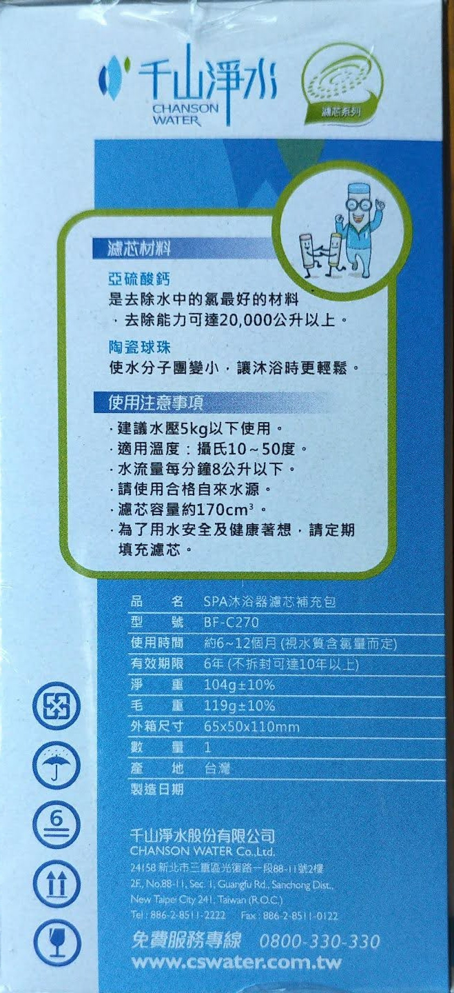 ✨Ruột Lọc BF-C270 cho Bộ Lọc Nước Tắm BF-007, hiệu Chanson